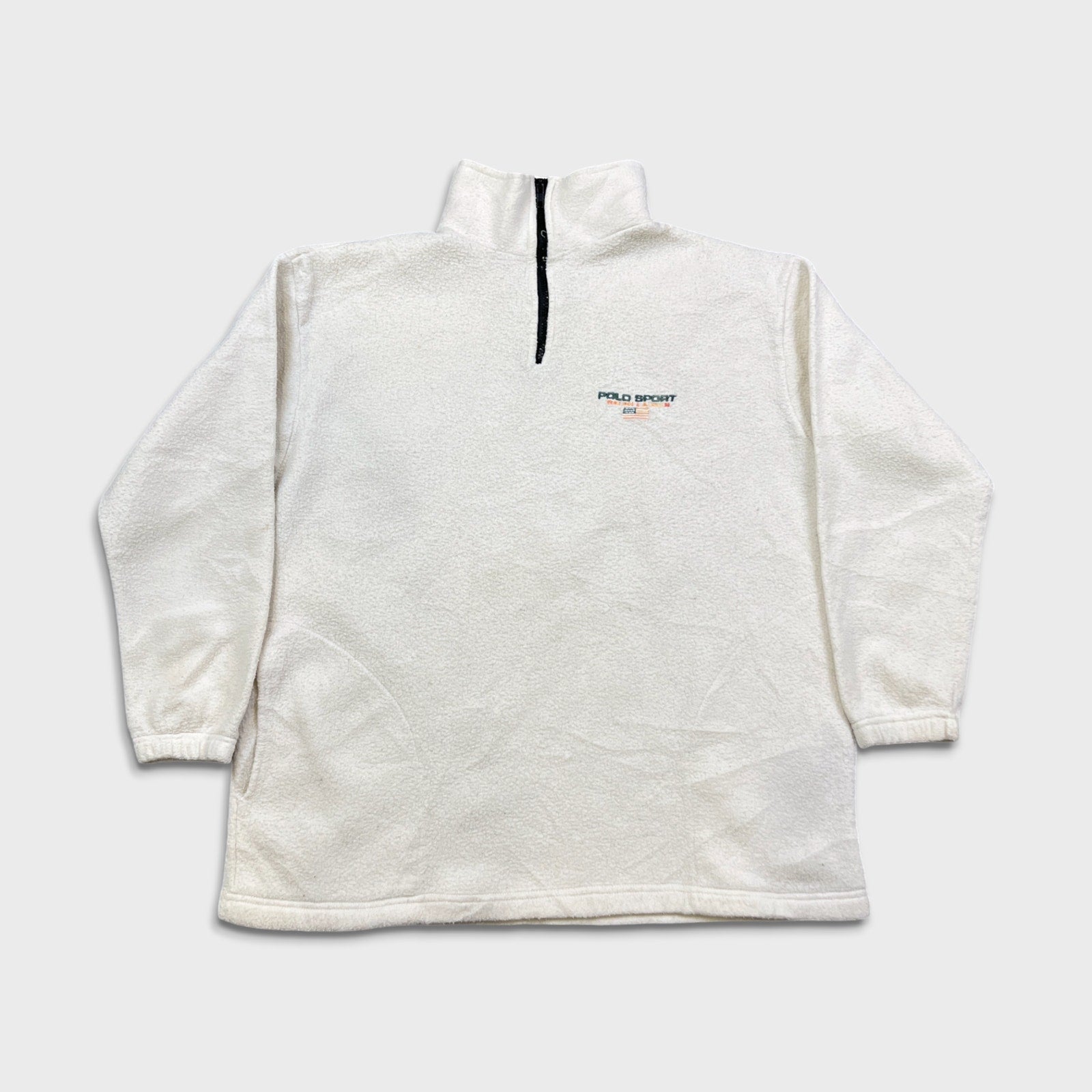 Vintage 90s Polo Sport Ralph Lauren Fleece Mens XL White USA 1/4 Zip Jacket
