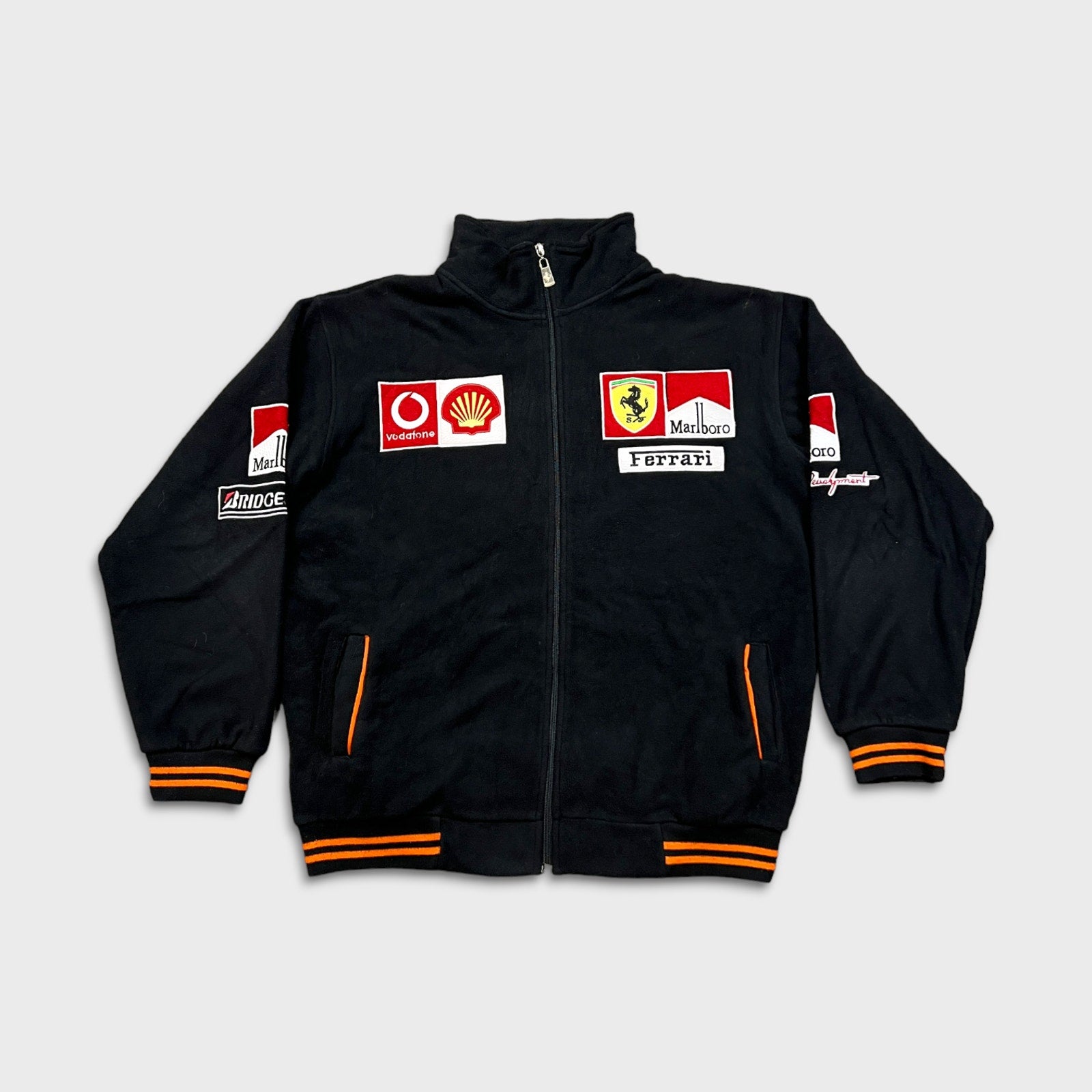Vintage 90s Ferrari Fleece Mens 2XL Black F1 Racing Marlboro Embroidered Jacket