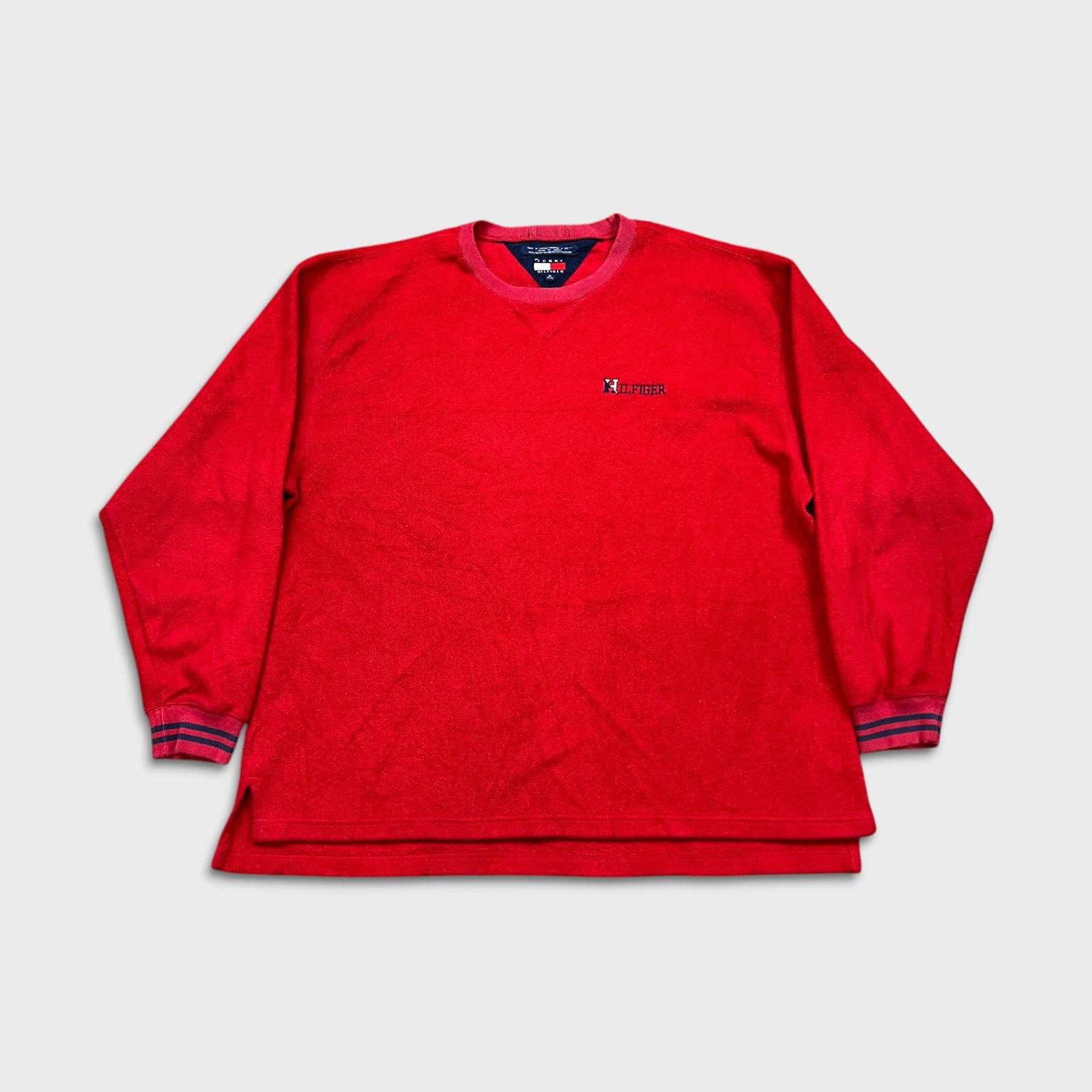 Vintage 90s Tommy Hilfiger Fleece Mens XL Red Pullover Spell Out Jacket