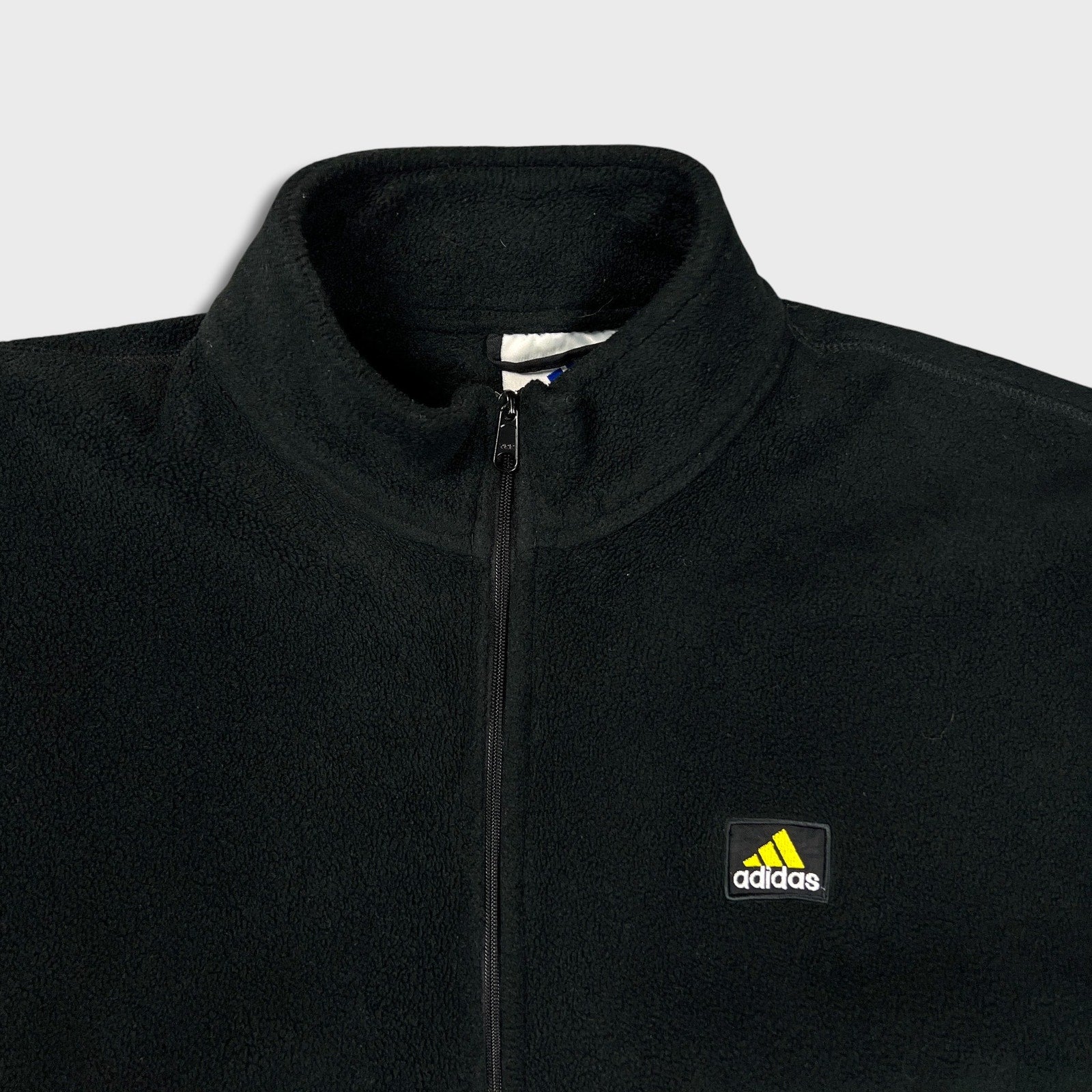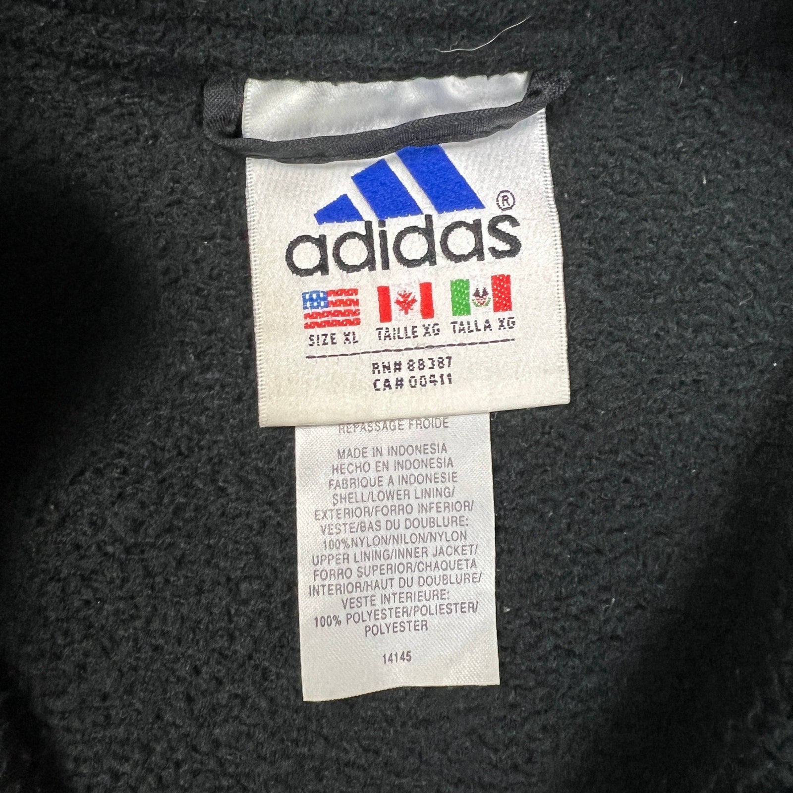 Vintage 90s Adidas Fleece Mens XL Black 3 Stripe Spell Out Full Zip Jacket