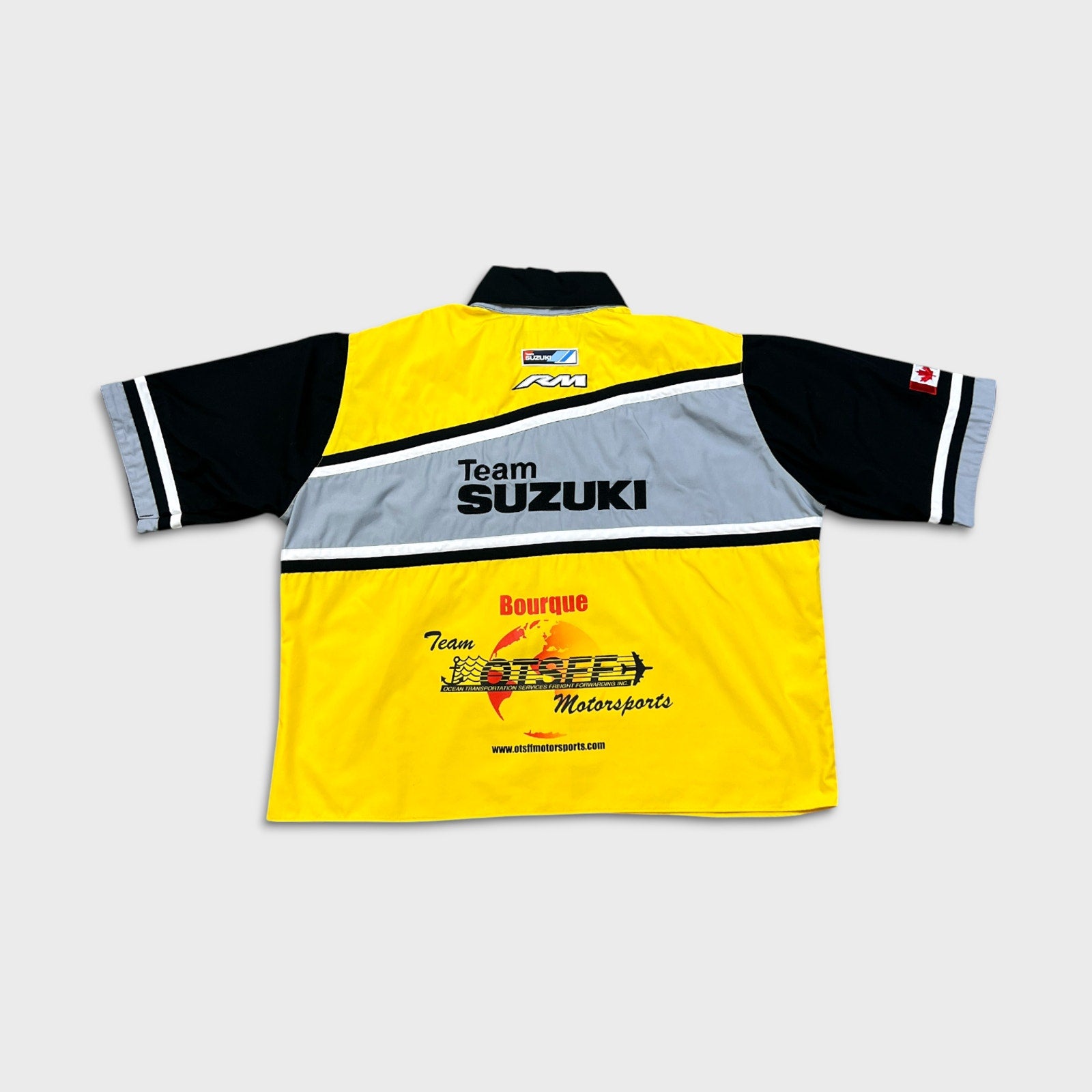 Vintage 90s Team Suzuki Racing Shirt Mens XL Yellow Button Up Pit