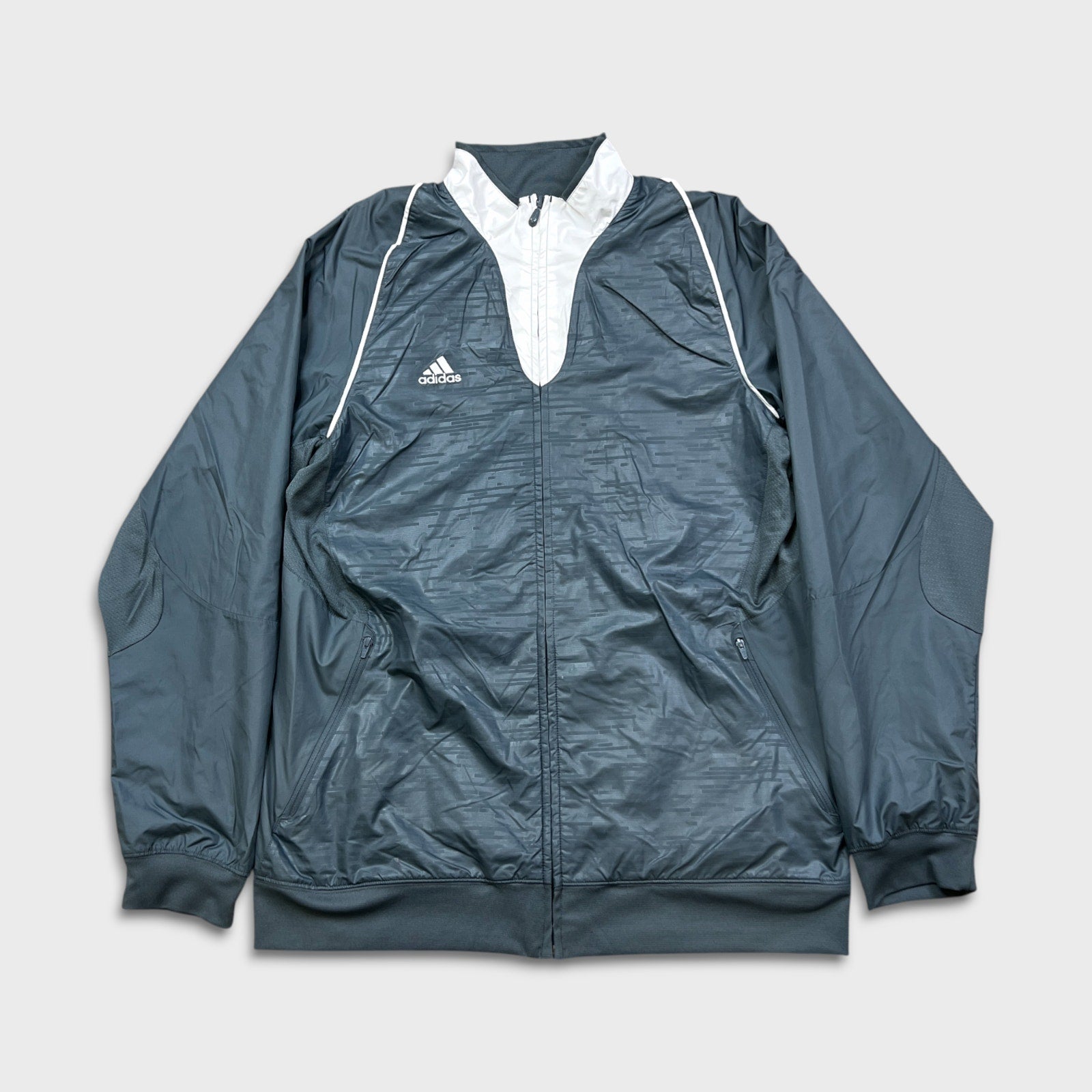 Vintage 90s Adidas Jacket Mens Large Gray Reversible 3 Stripe Heavy Coat