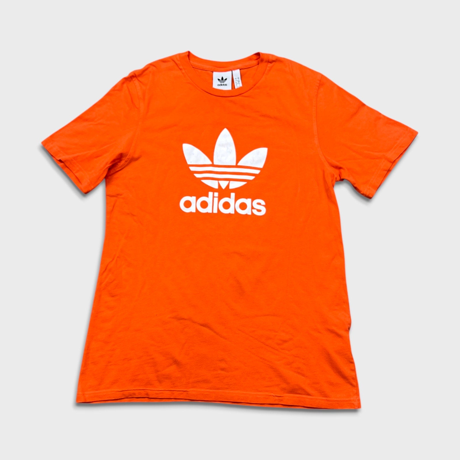 Adidas T Shirt Mens Small Orange Originals Trefoil Spell Out Short Sleeve Tee