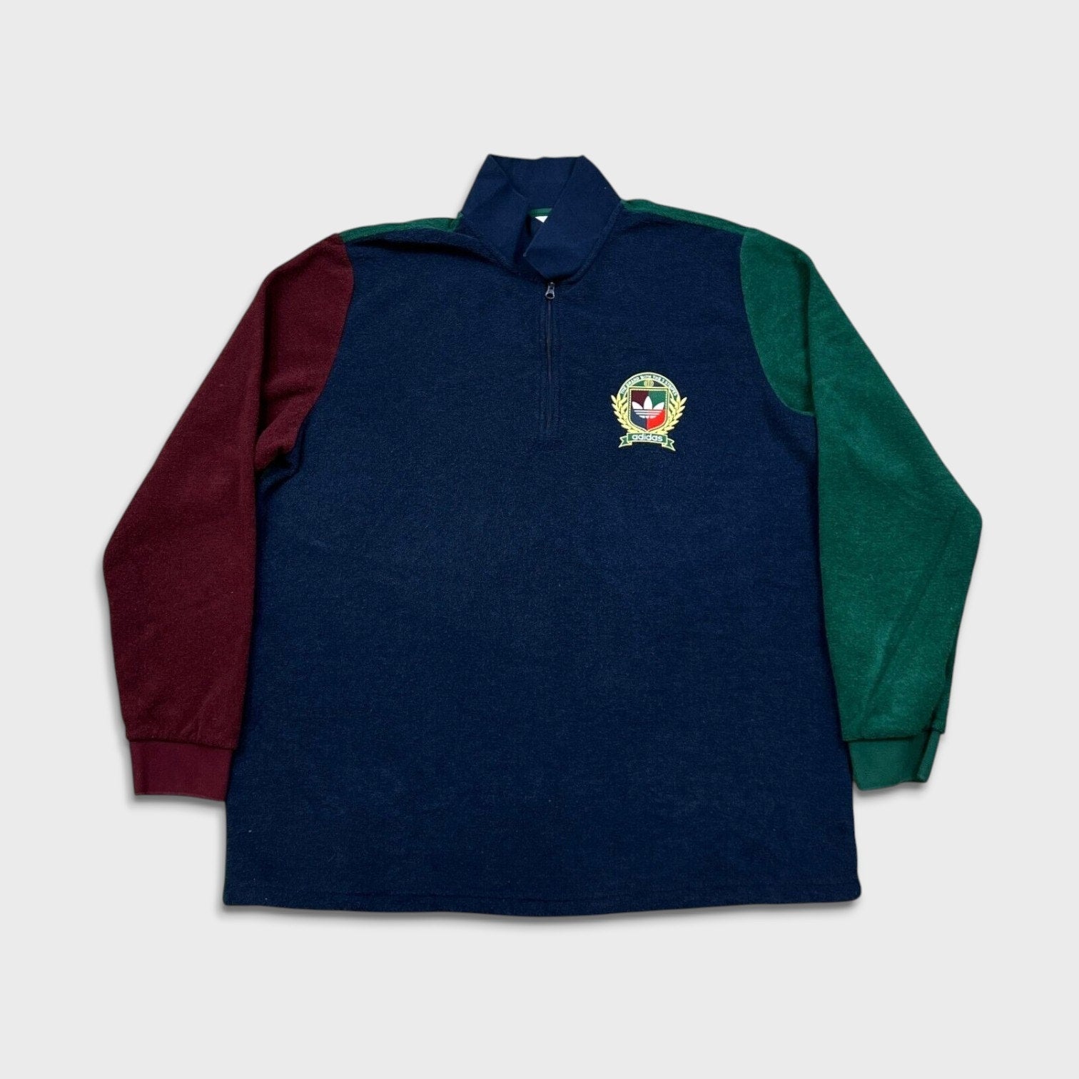 Adidas Fleece Mens XL Blue Trefoil Crest Spell Out 1/4 Zip Pullover Jacket
