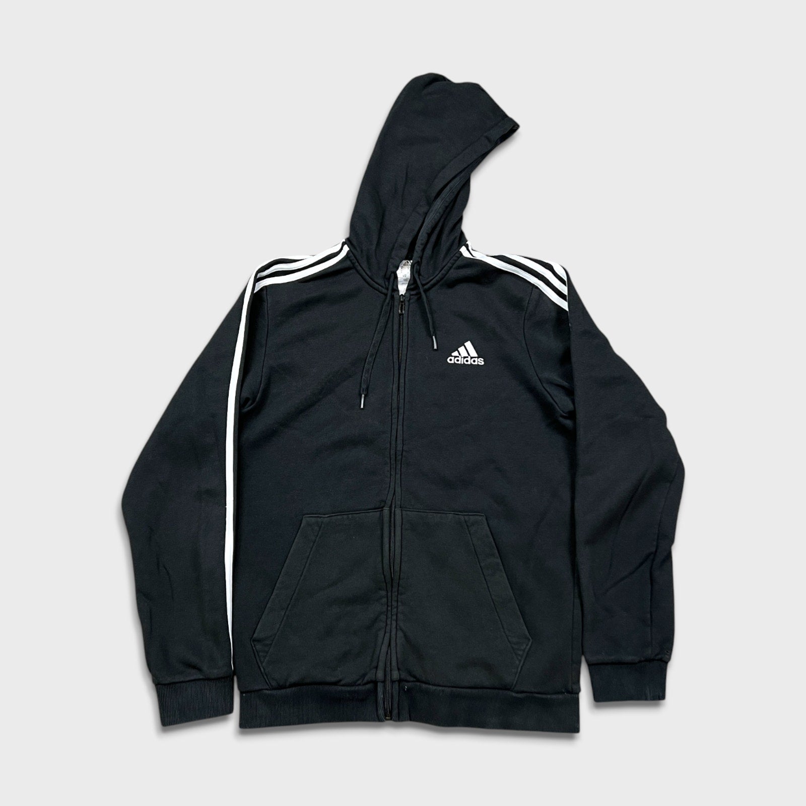 Adidas Hoodie Mens Medium Black Essentials Spell Out Full Zip Hooded Sweater