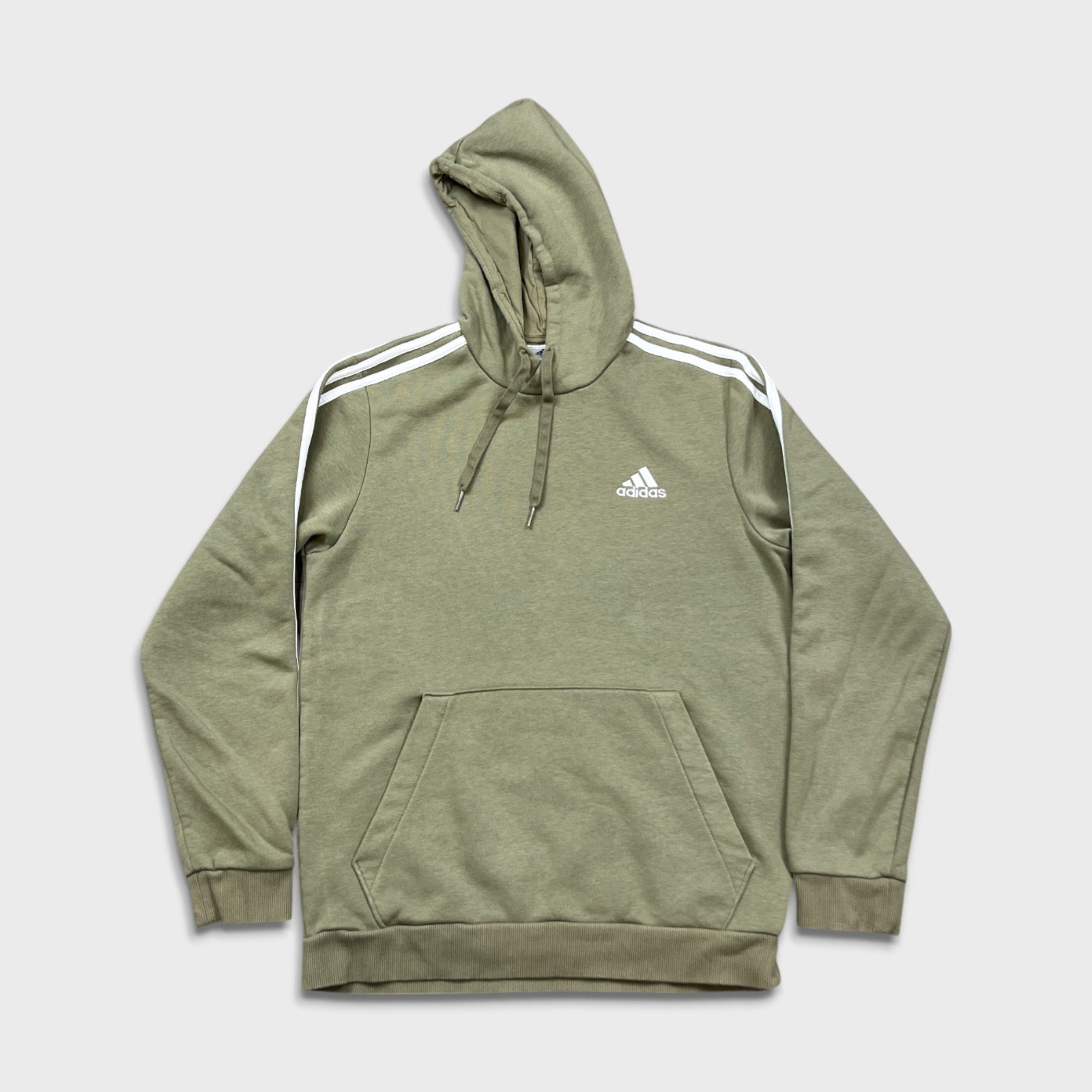 Adidas Hoodie Mens Medium Green Essentials Stripe Spell Out Logo Hooded Sweater