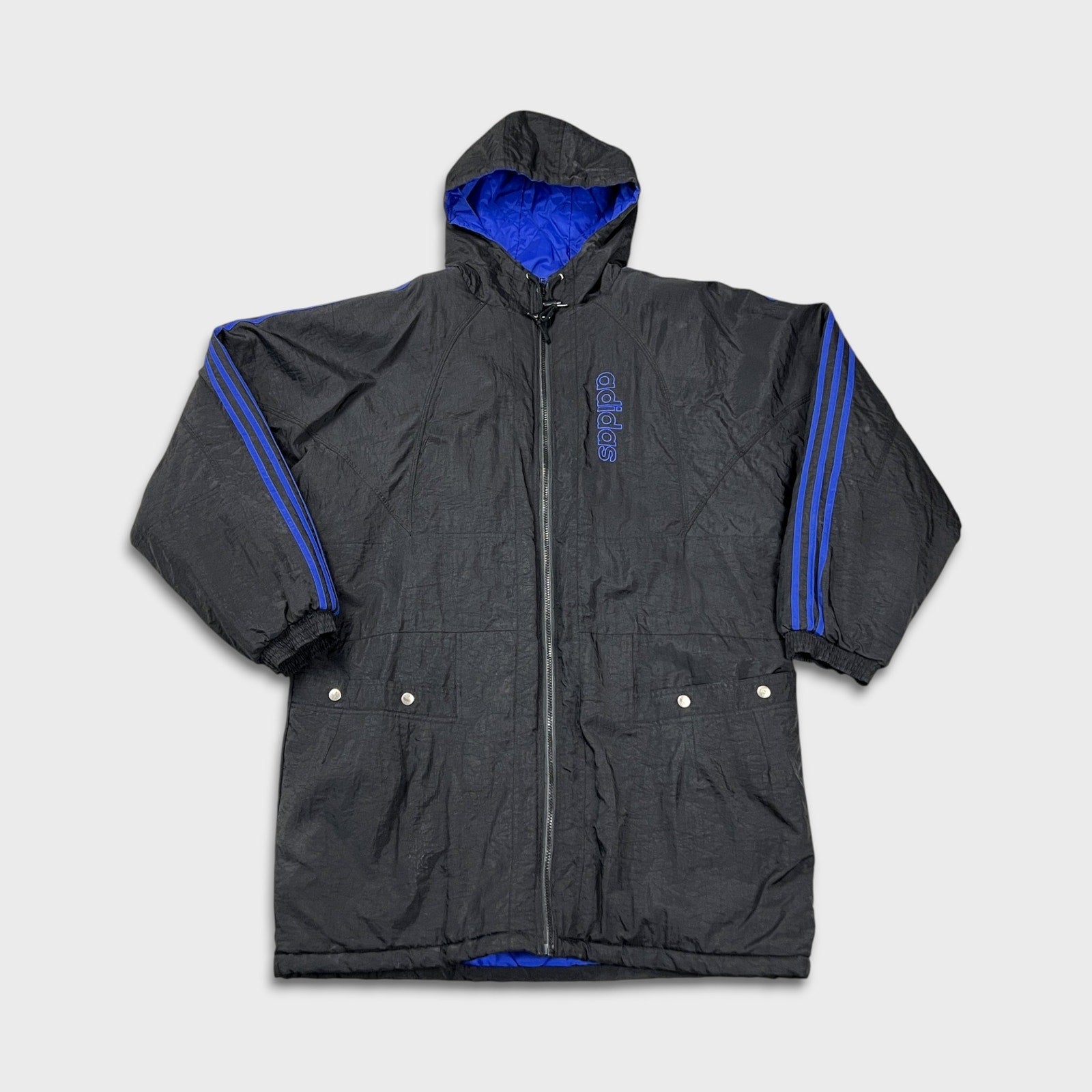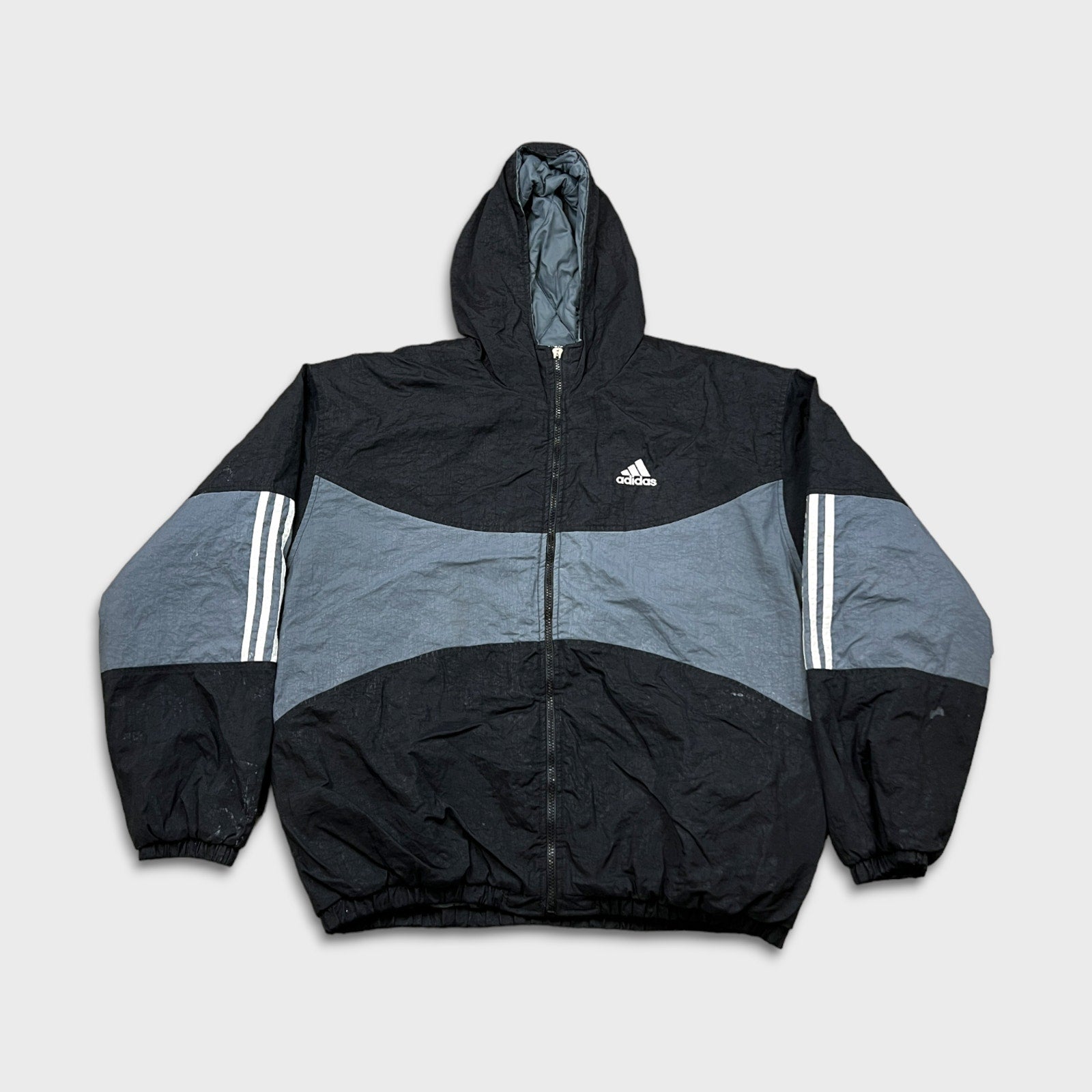 Vintage 90s Adidas Jacket Mens Large Gray Reversible 3 Stripe Heavy Coat