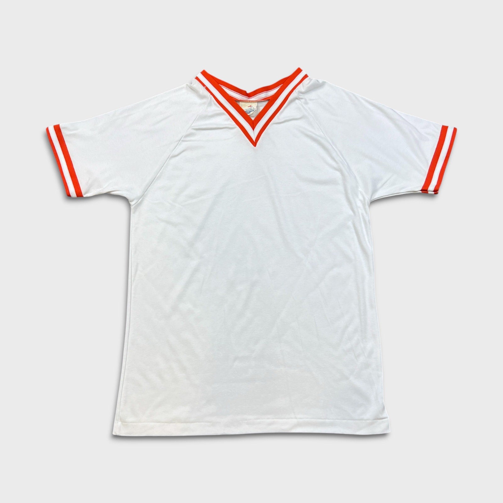 Vintage Le Club T Shirt Mens XL White Ringer V Neck 80s Retro Blank Tee