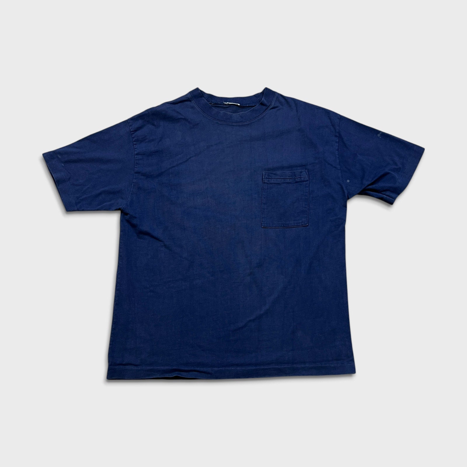 Vintage 90s Blank Pocket T Shirt Mens Large Blue Single Stitched Heavy Faded Tee