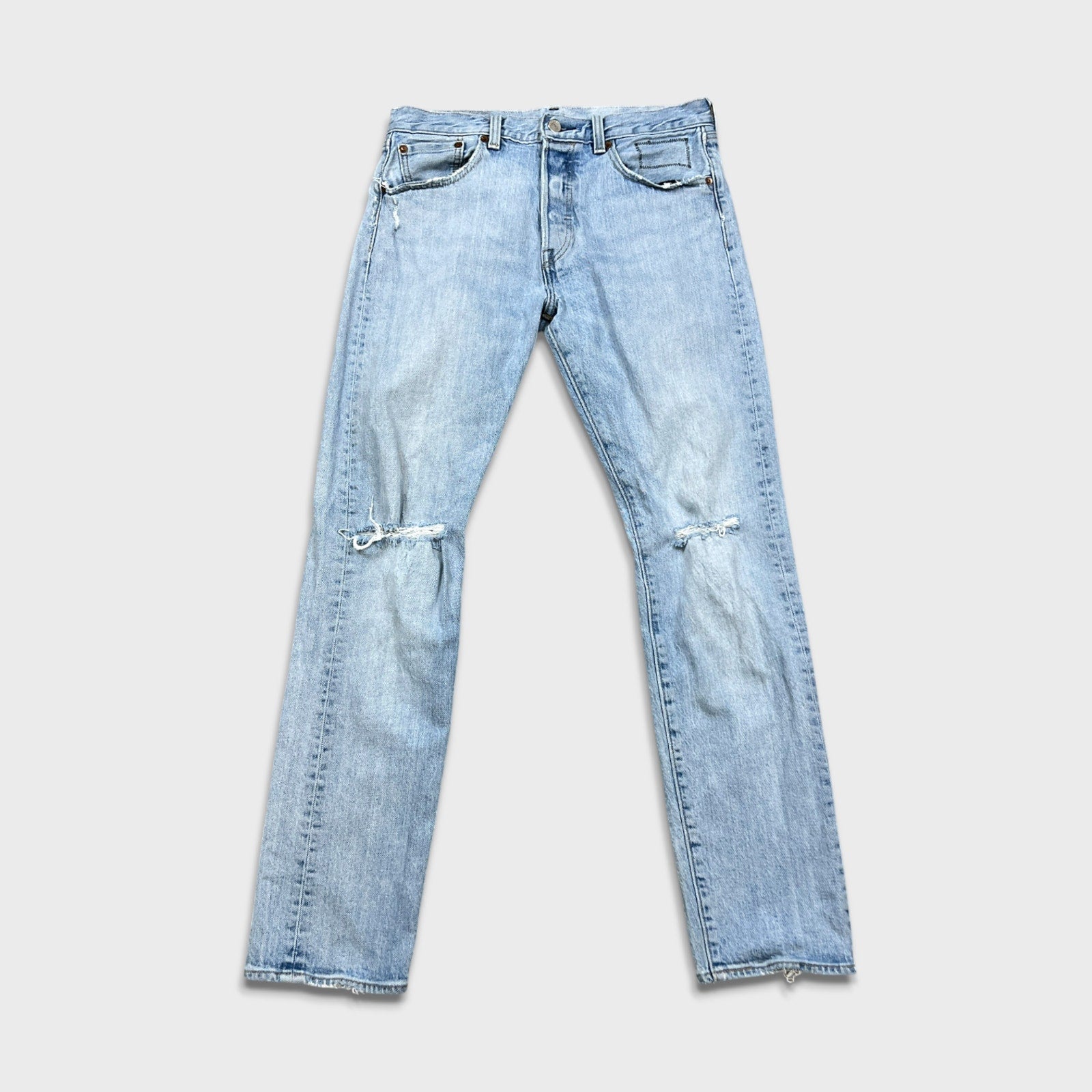 Levi’s 501 ST Jeans Mens 30x30 Blue Straight Taper Light Wash Distressed Denim Pants