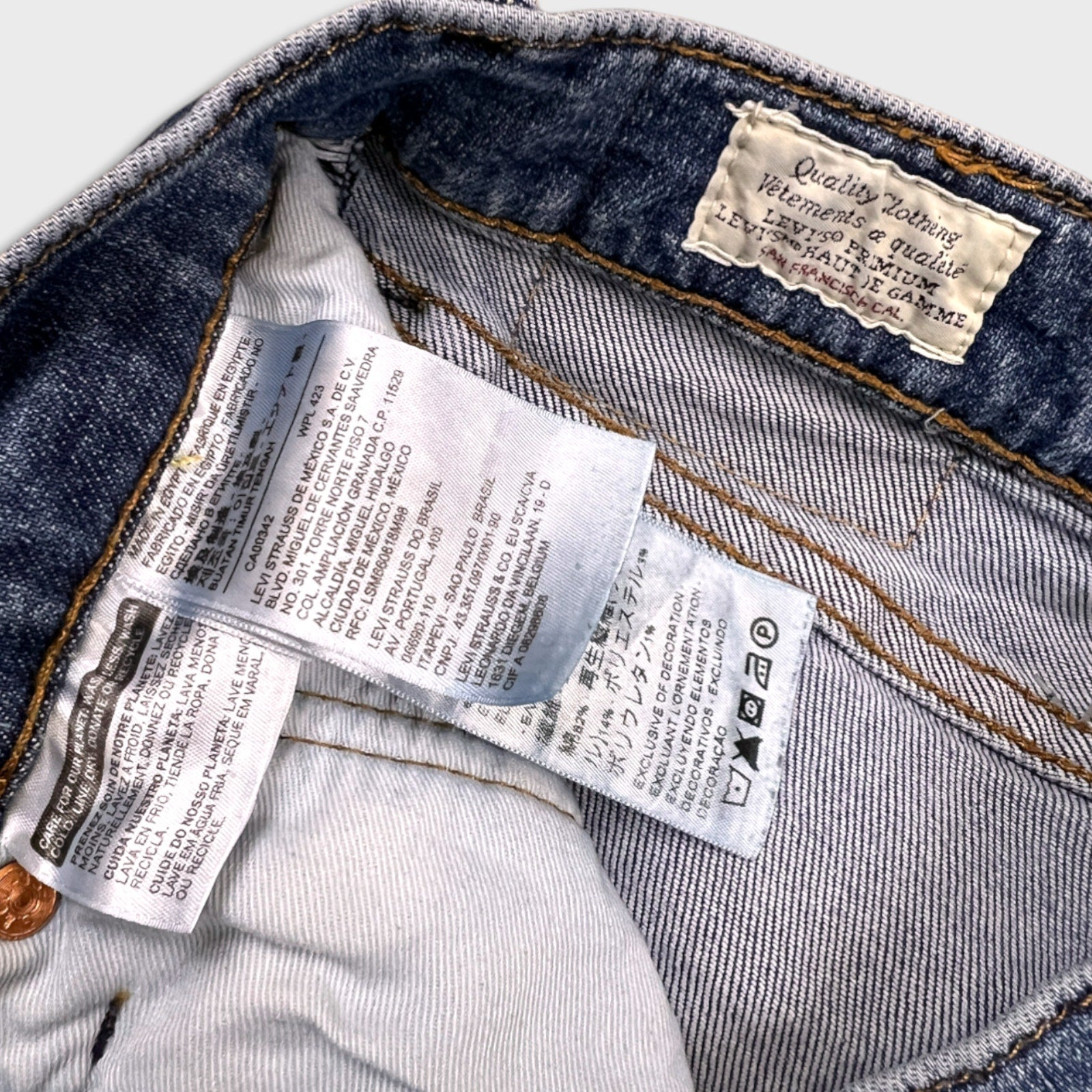 Denim, Cotton, Lyocell, Polyester, and Lycra