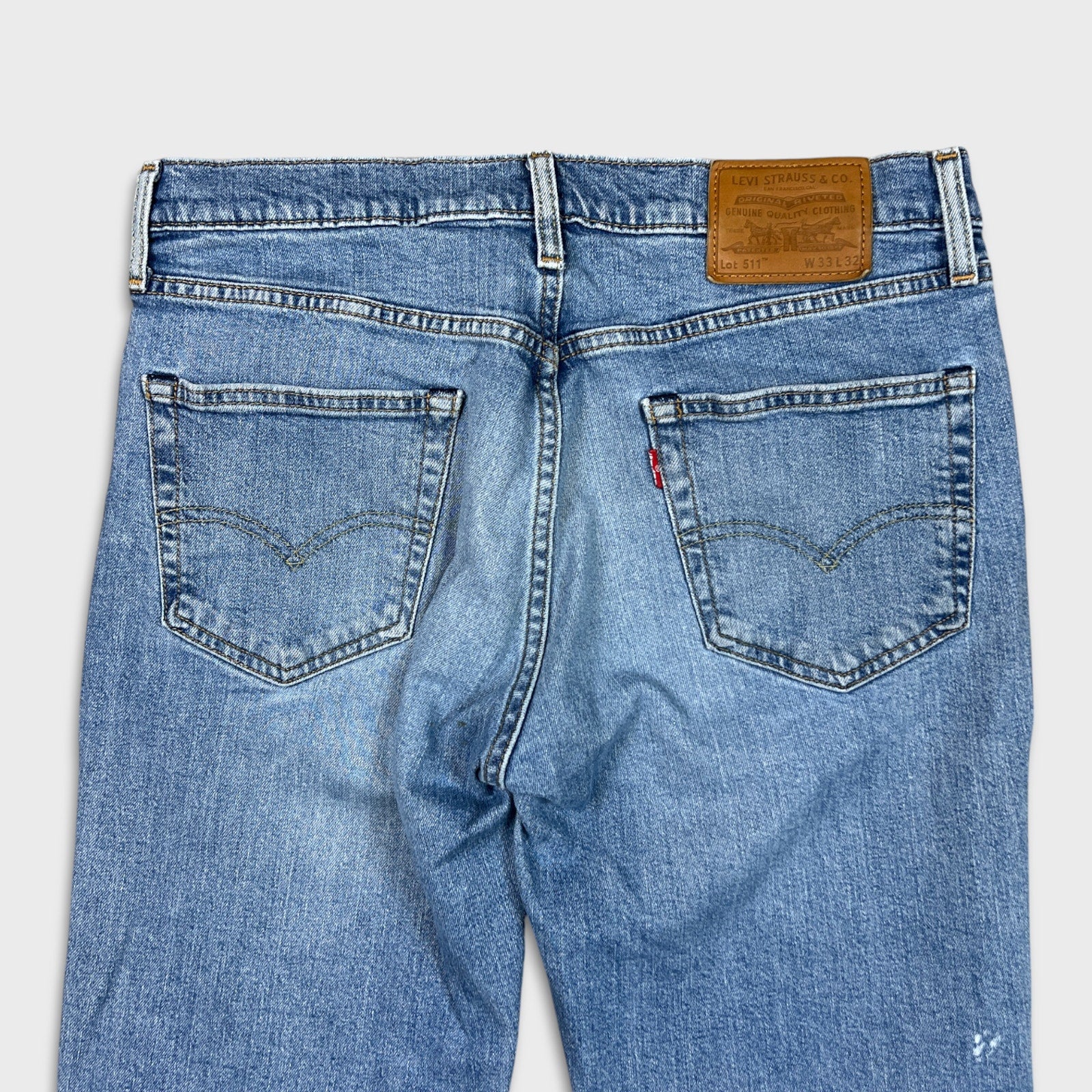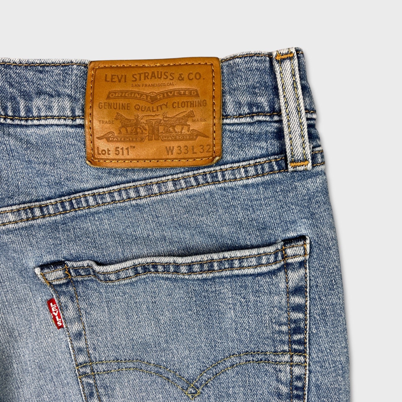 Levi's 511 Jeans Mens 33x32 Blue Slim Fit Mid Rise Light Wash Faded Denim Pants