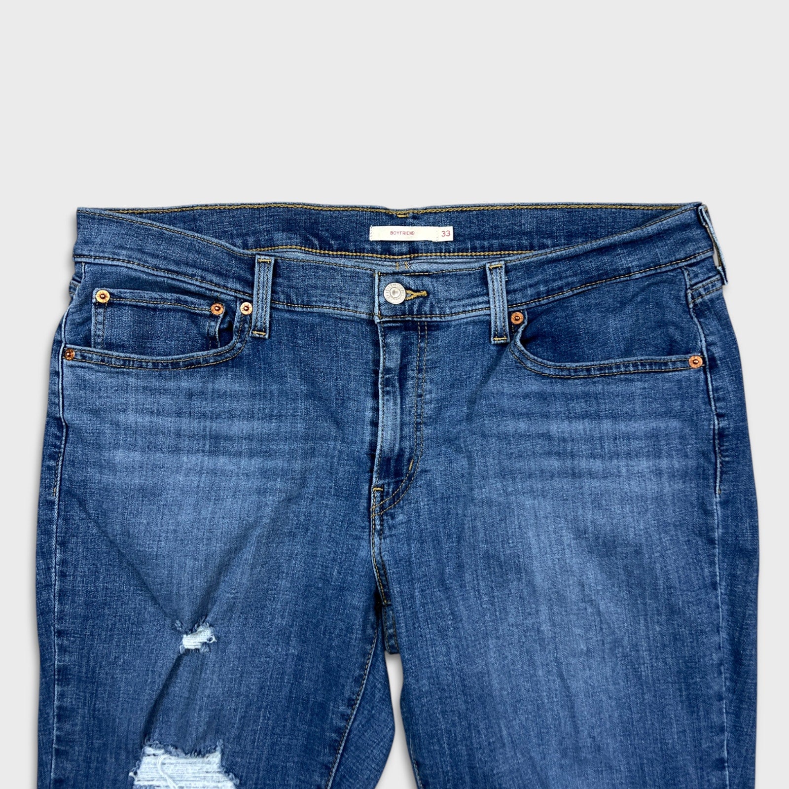Levi's Boyfriend Jeans Womens 38x27 Blue Relaxed Fit Mid Rise Distressed Denim Pants
