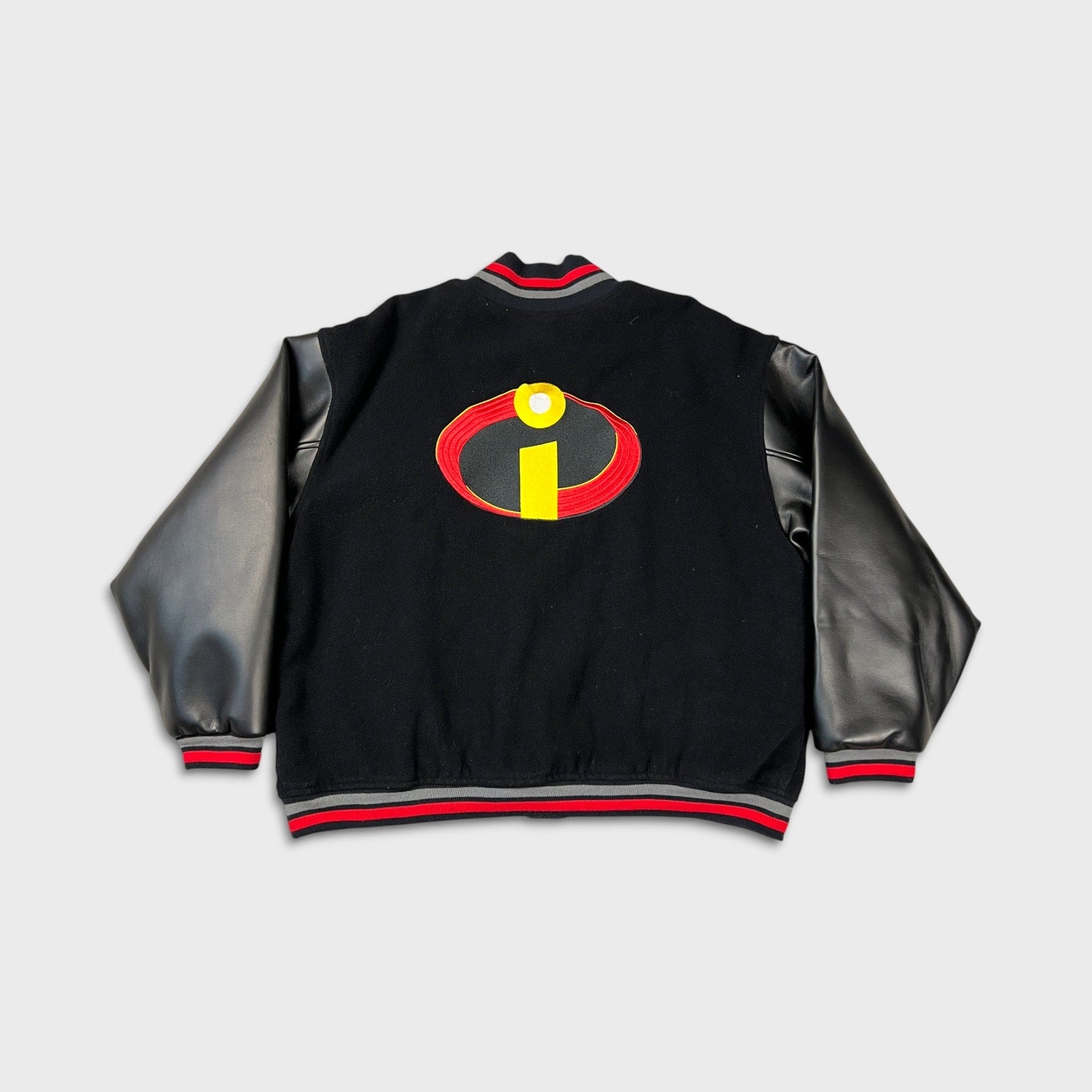 Vintage 2004 Disney The Incredibles Jacket Mens XL Black Movie Promo Varsity Bomber