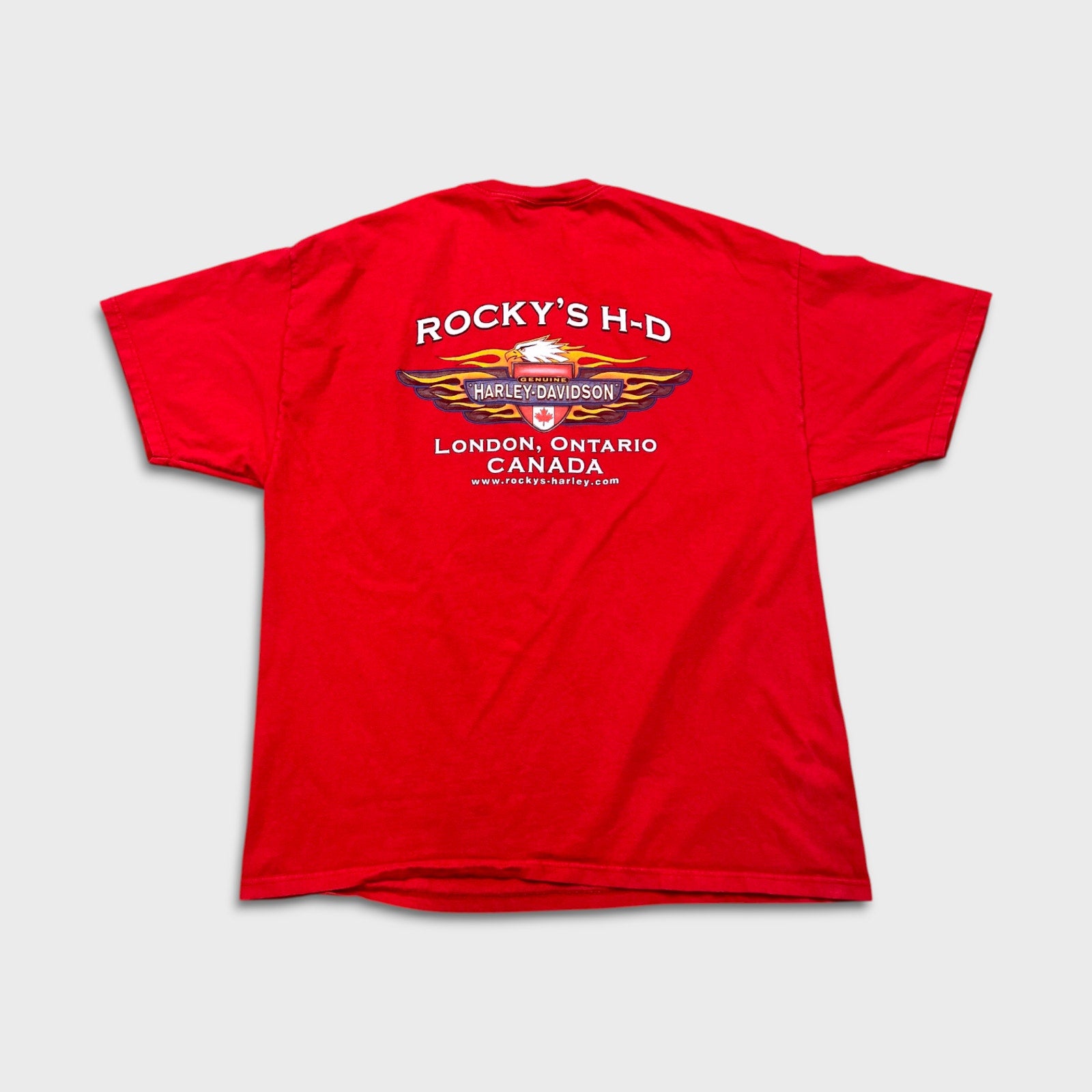 Vintage 2005 Harley Davidson T Shirt Mens 2XL Red Canada USA Eagle Biker Tee