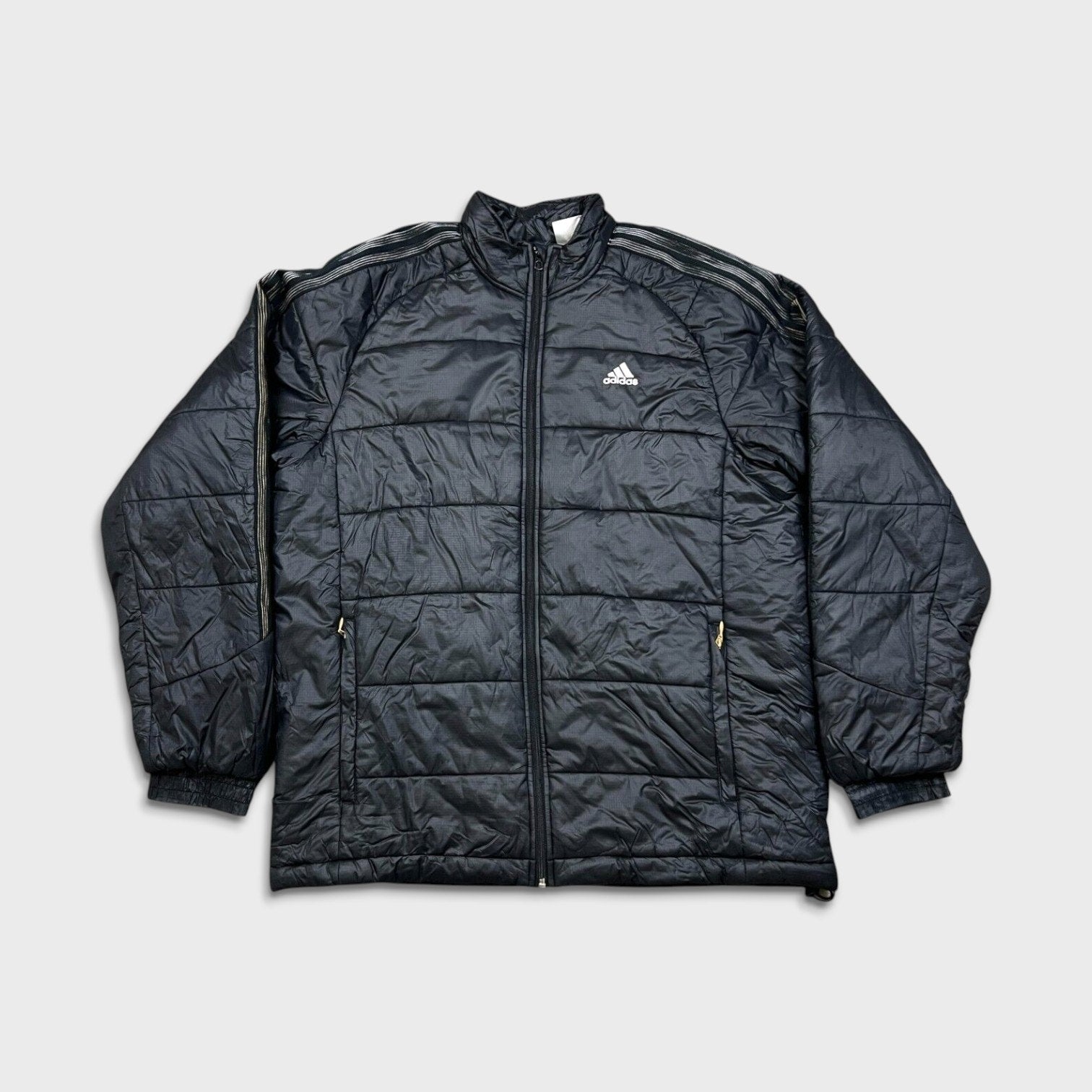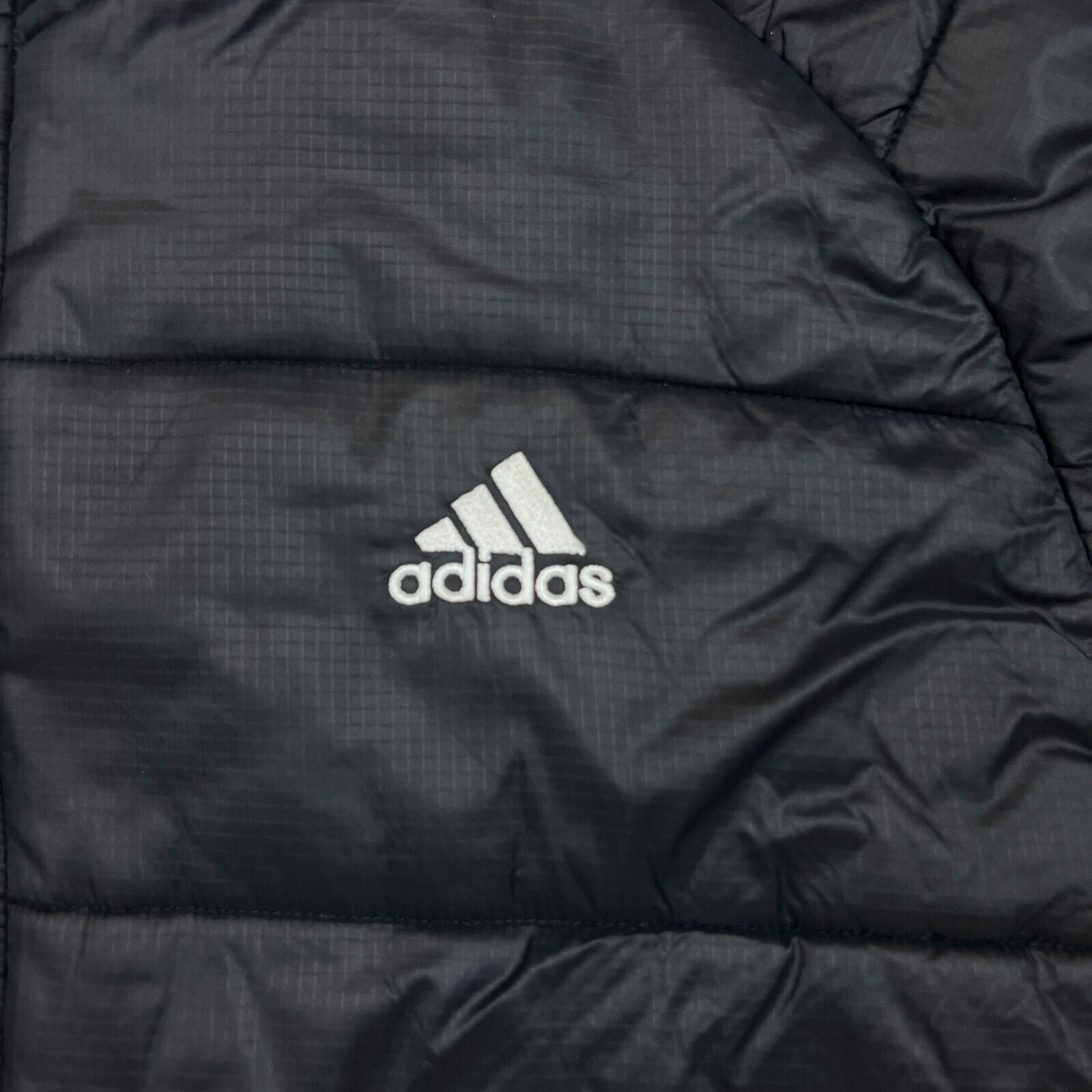 Adidas Clima Proof Jacket Mens Large Black Puffer Full Zip Spell Out Coat