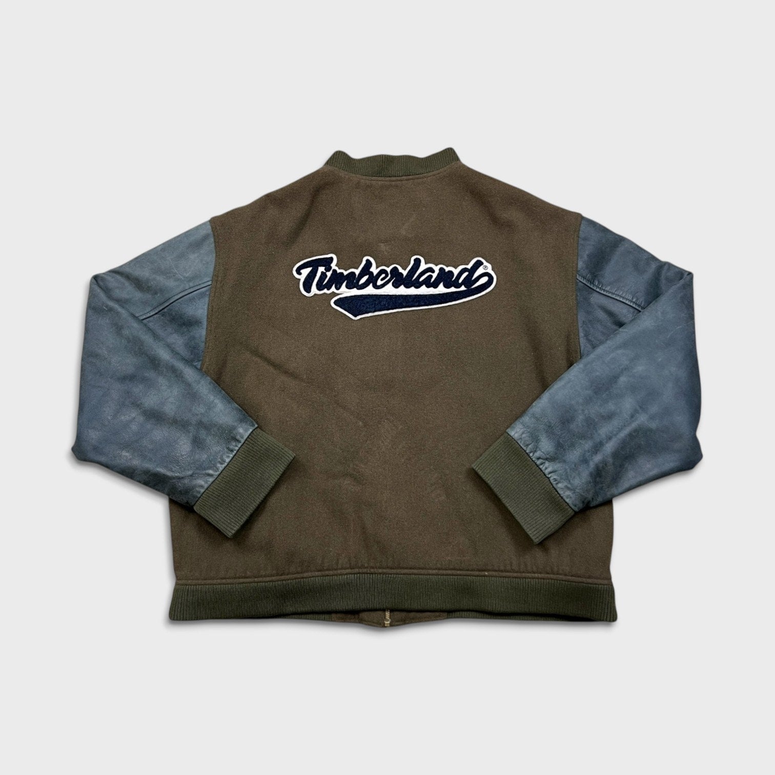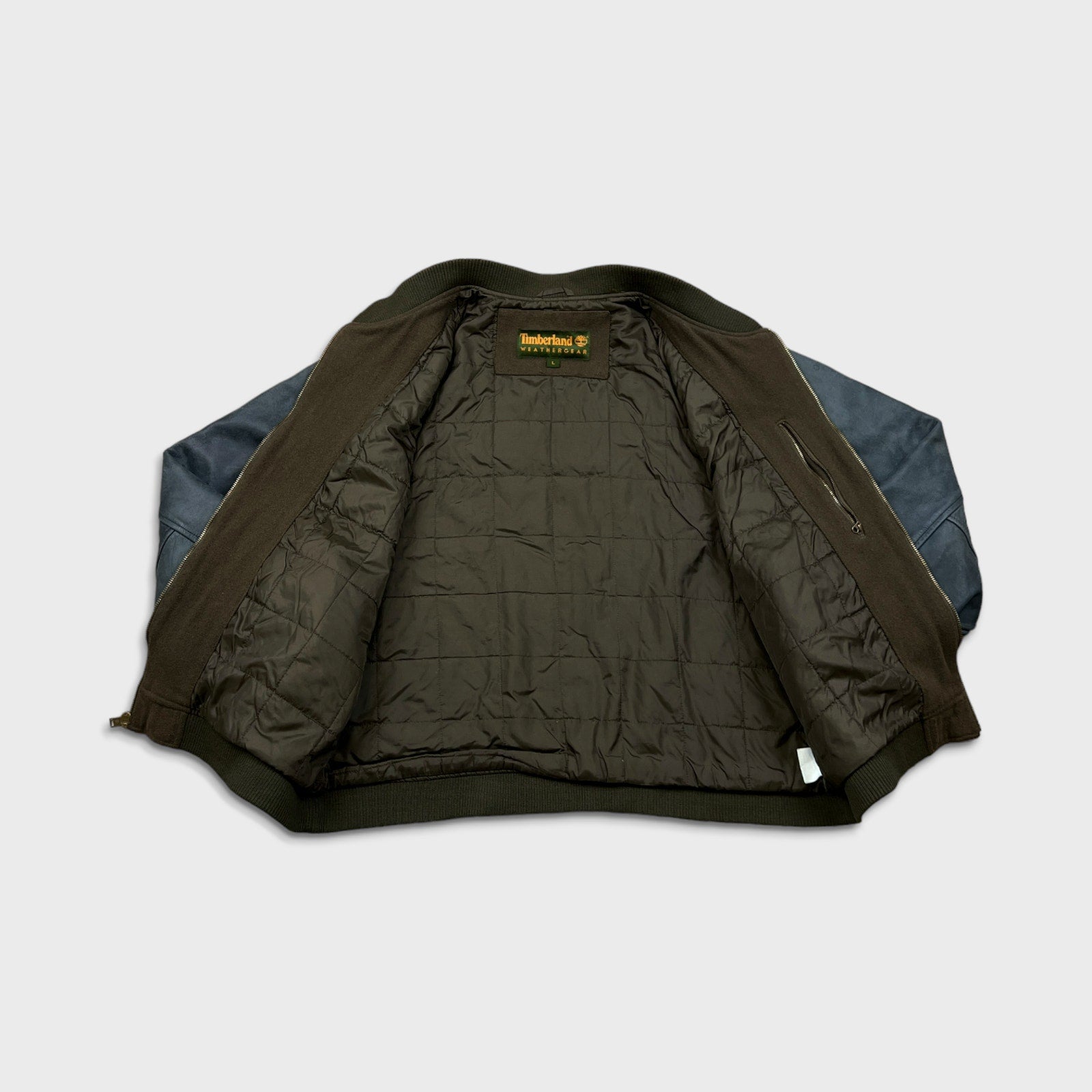 Vintage 90s Timberland Jacket Mens Brown Large Wool Varsity Letterman