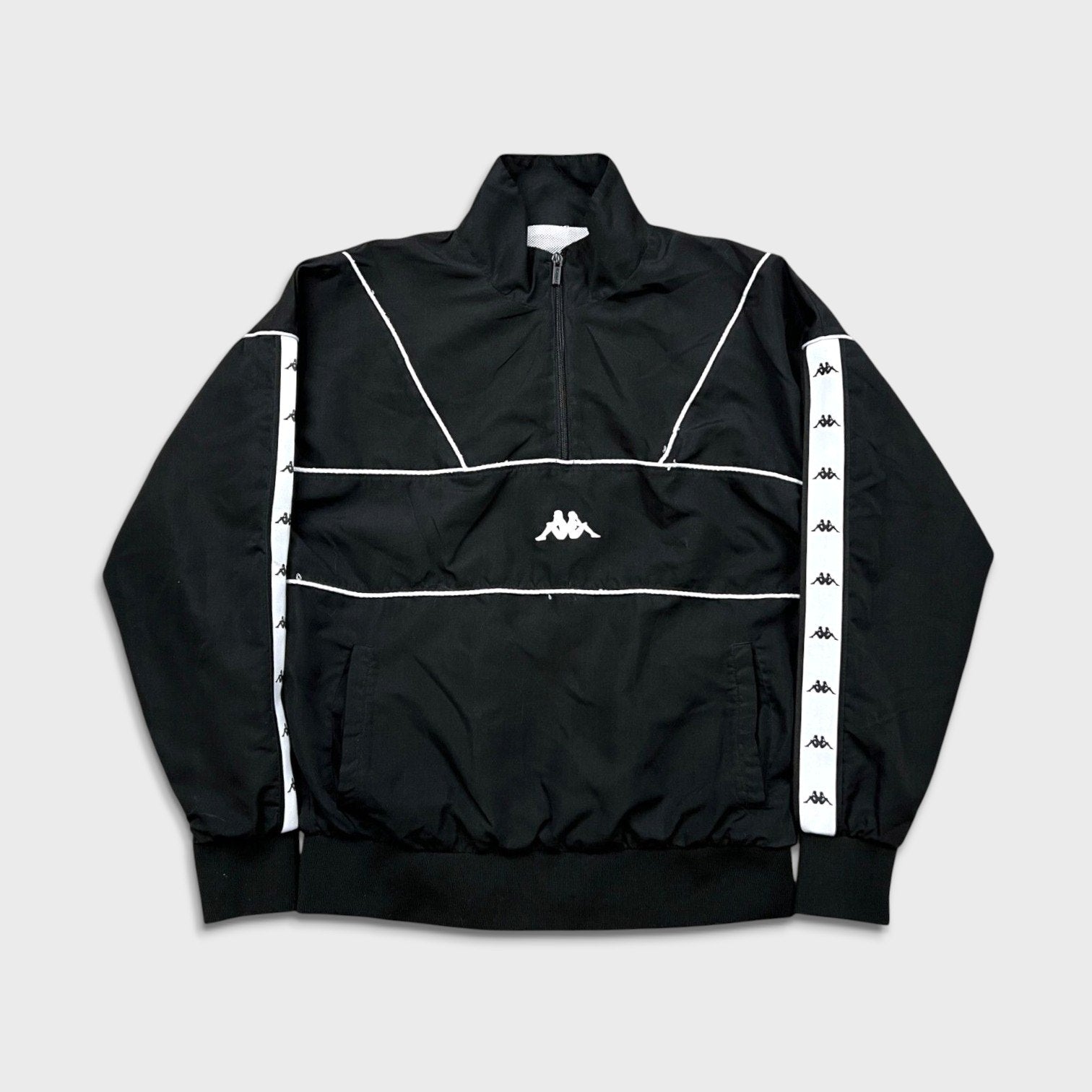 Vintage Y2K Kappa Sweatshirt Mens Medium Black 1/4 Zip Tracksuit Top Pullover
