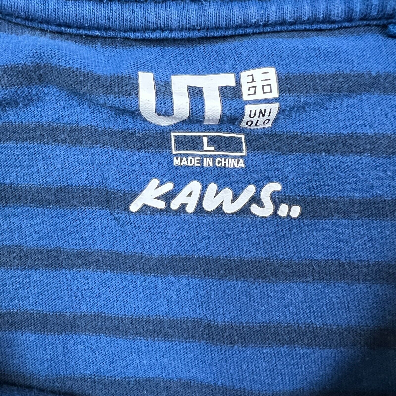KAWS x Uniqlo BFF Striped Tee Mens Large Blue Embroidered Logo Short Sleeve Tee