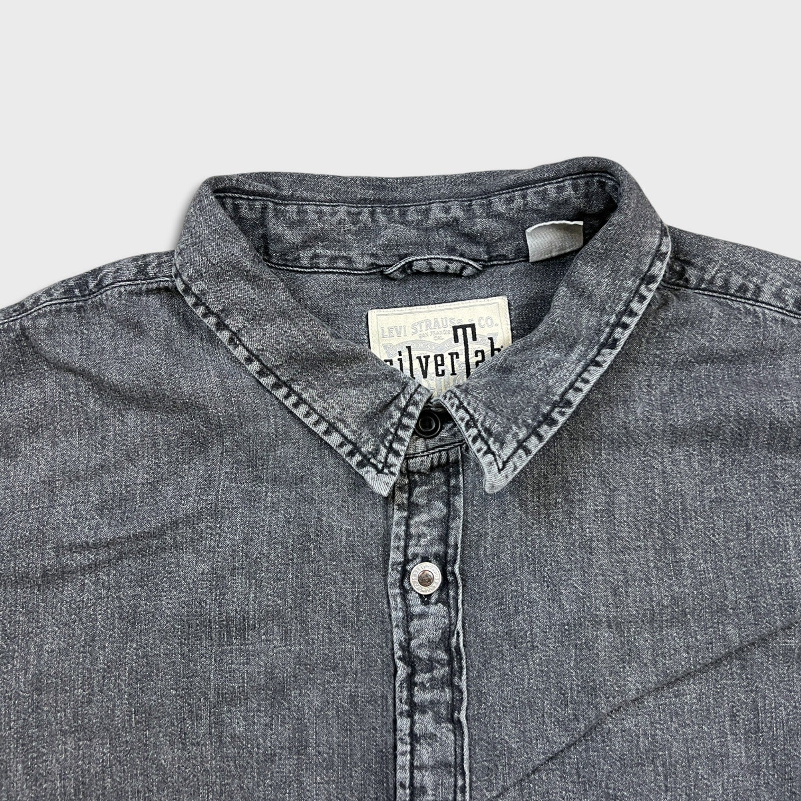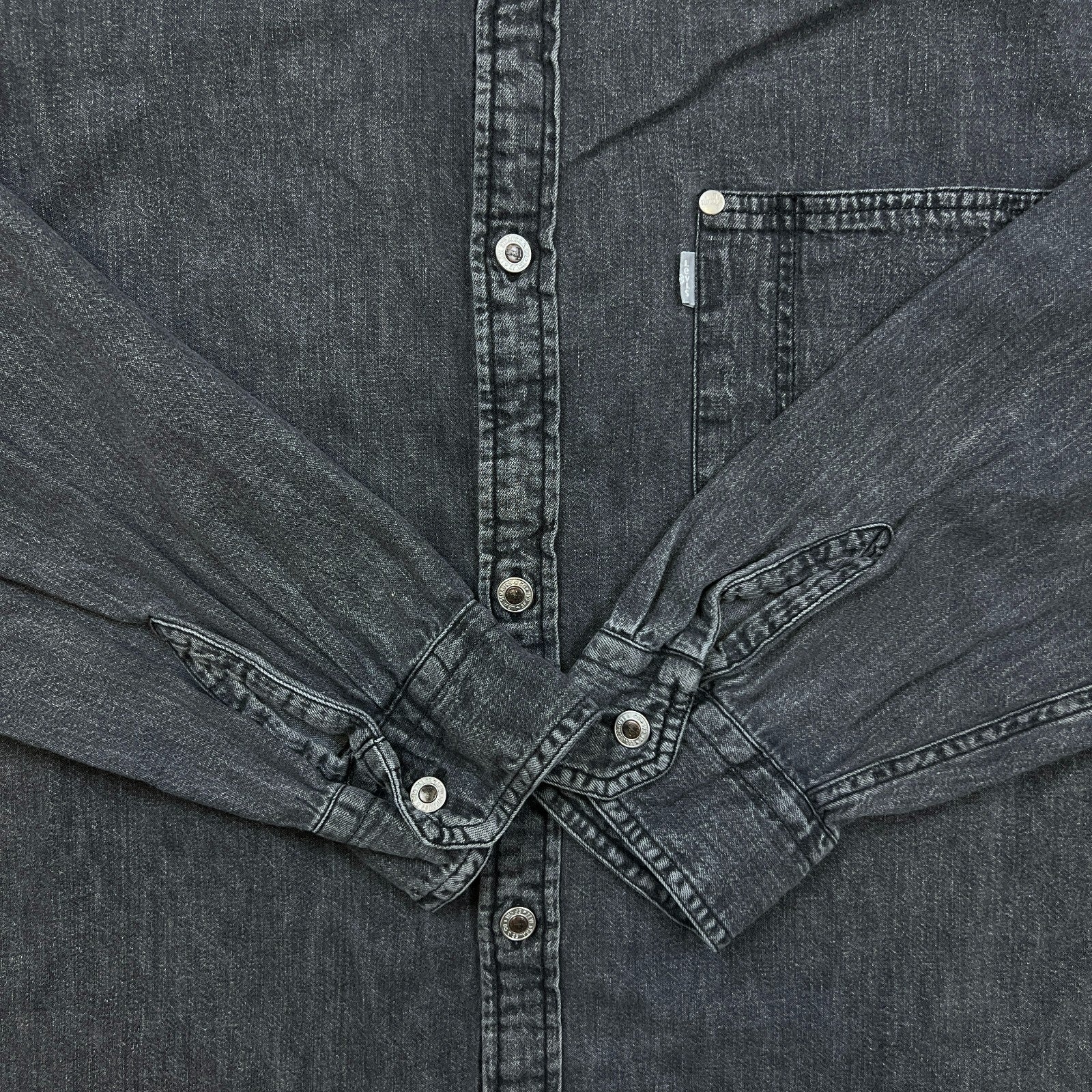 Levi’s Silvertab Denim Shirt Mens XL Black Oversized Acid Wash Button Up Western