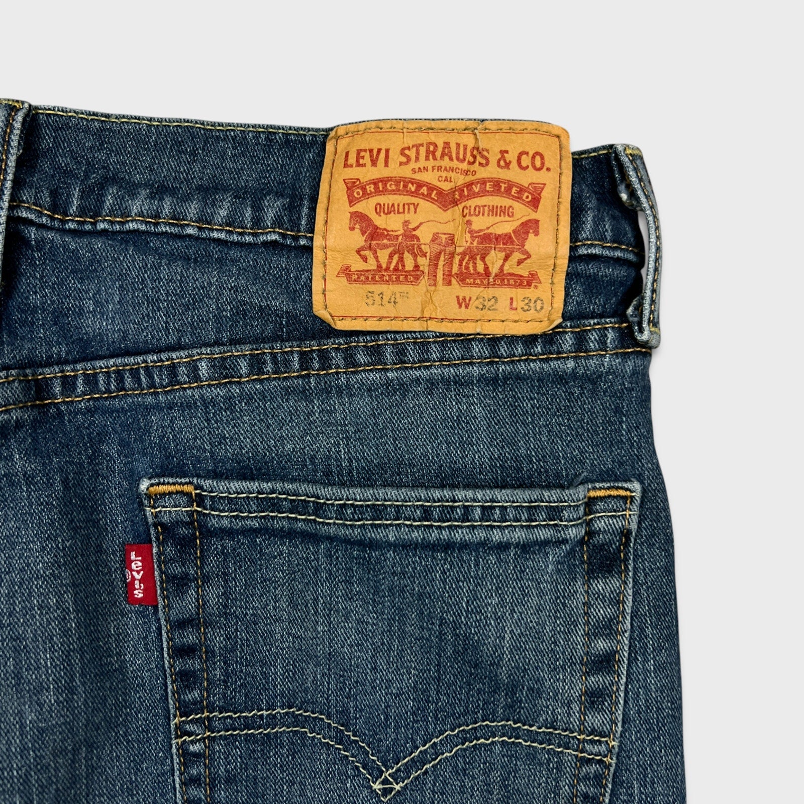 Levi's 514 Jeans Mens 32x30 Blue Slim Straight Fit Dark Wash Faded Denim Pants
