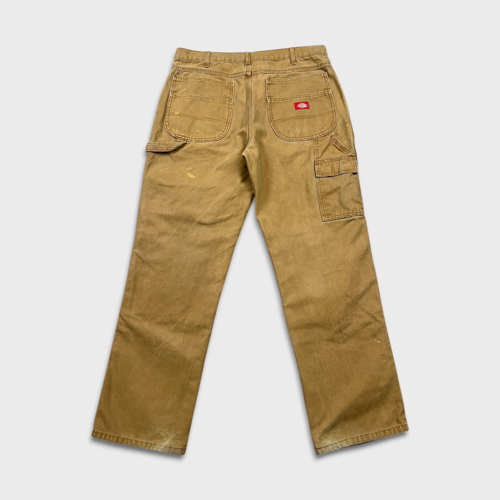 Dickies Pants Mens 34x30 Beige Double Knee Distress Carpenter Fade Canvas Workwear