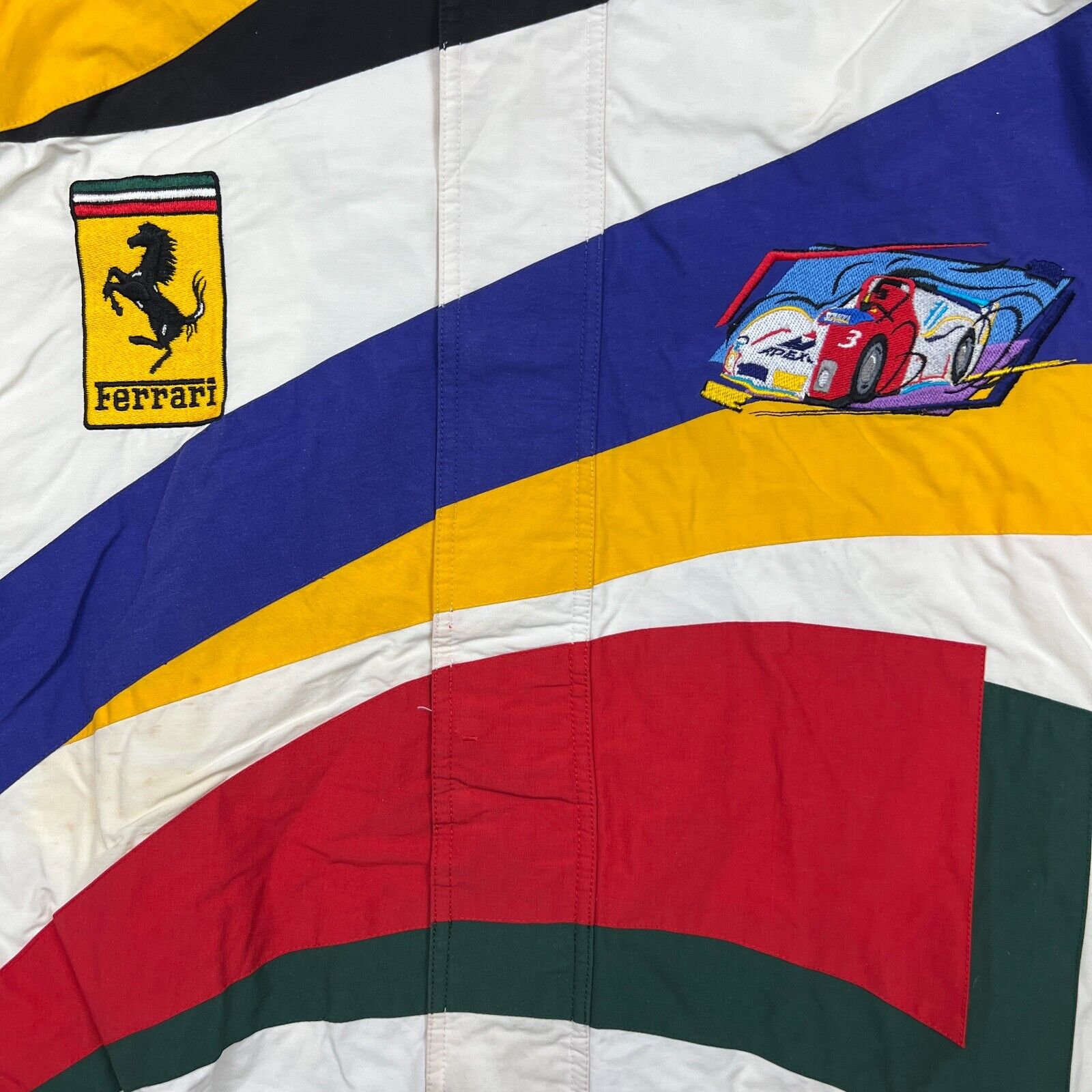Vintage 90s Apex One Michael Schumacher NASCAR Jacket Mens XL White F-1 Ferrari 333 Scandia