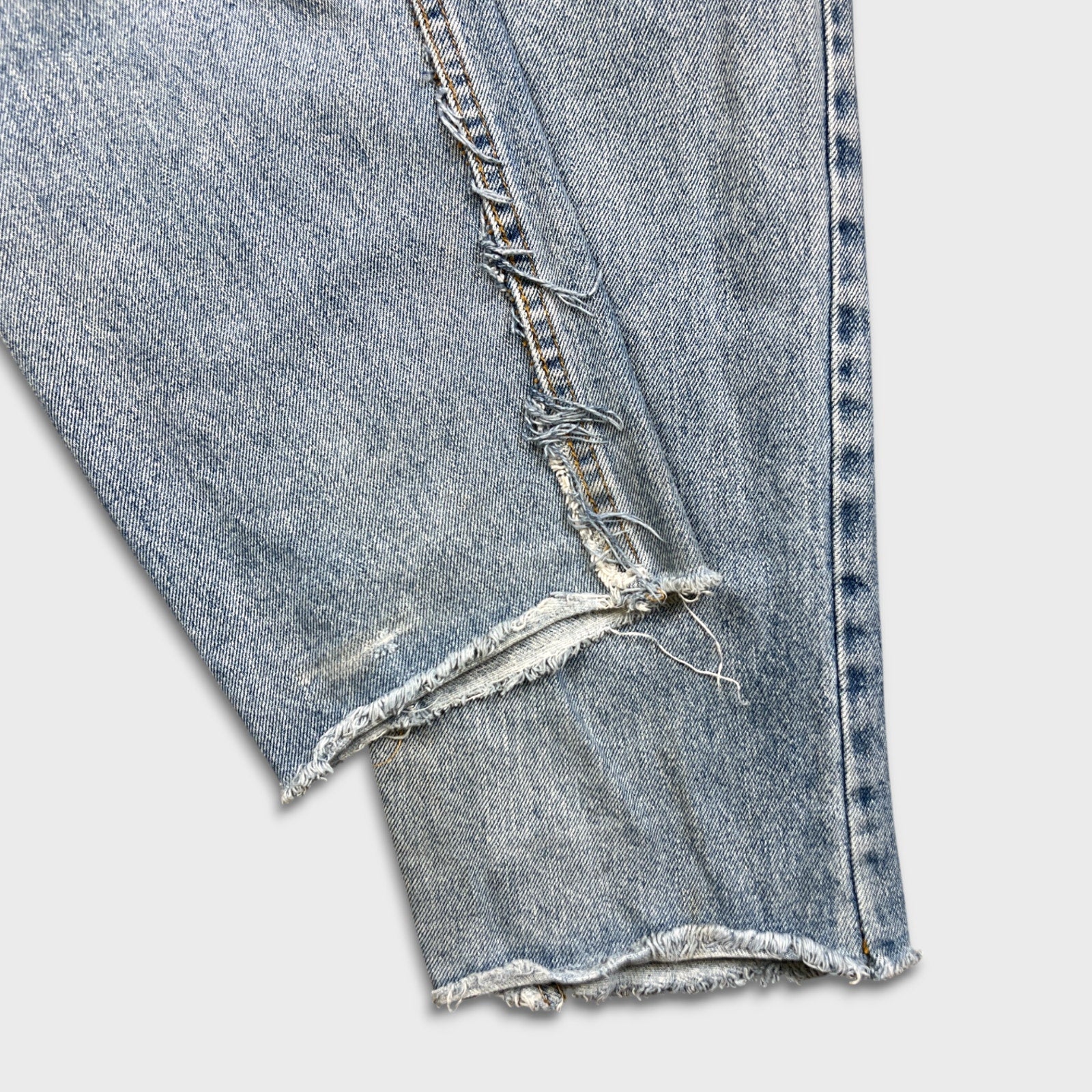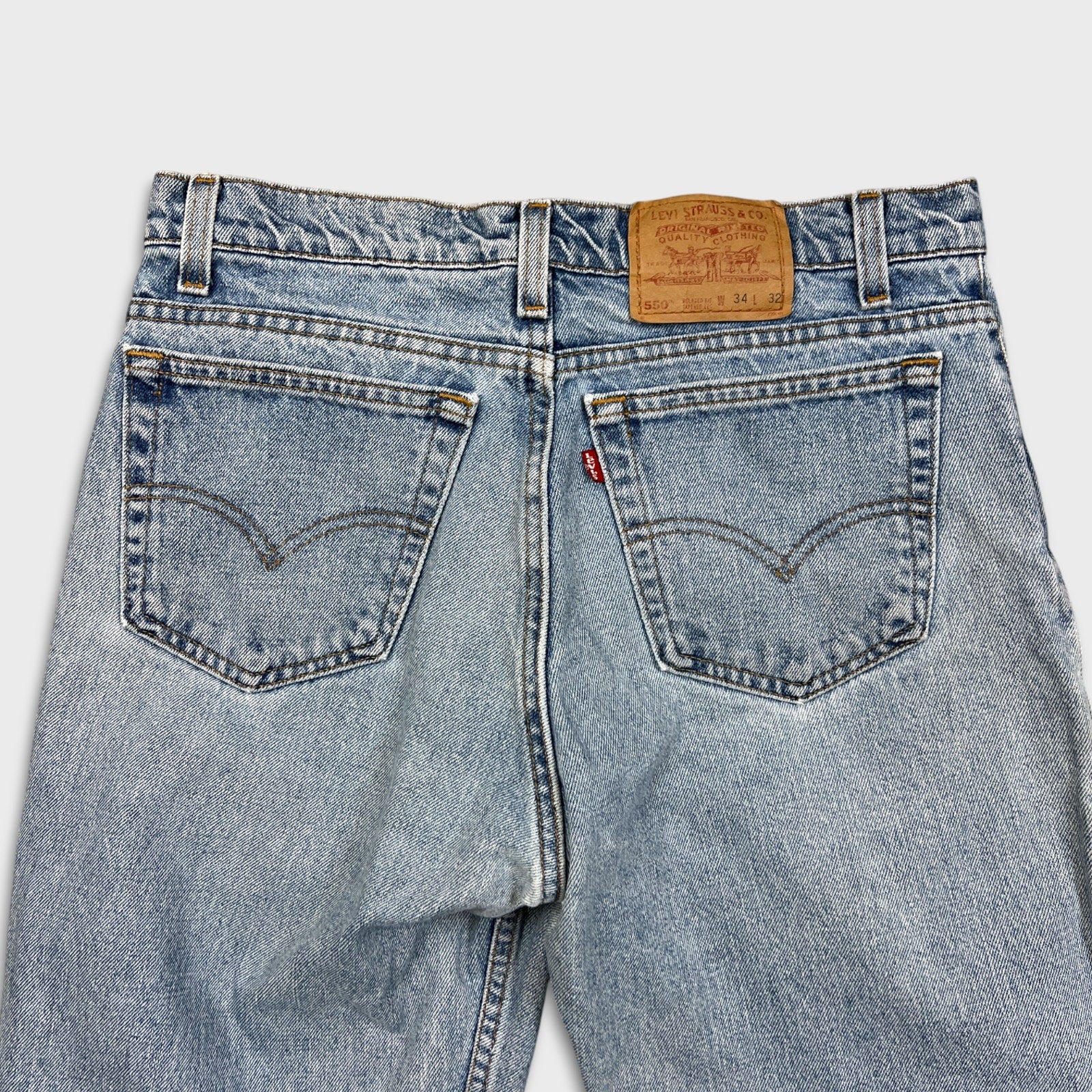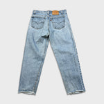 Vintage 90s Levi's 550 Jeans Mens 34x29 Blue Relaxed Fit Tapered Leg Frayed Denim