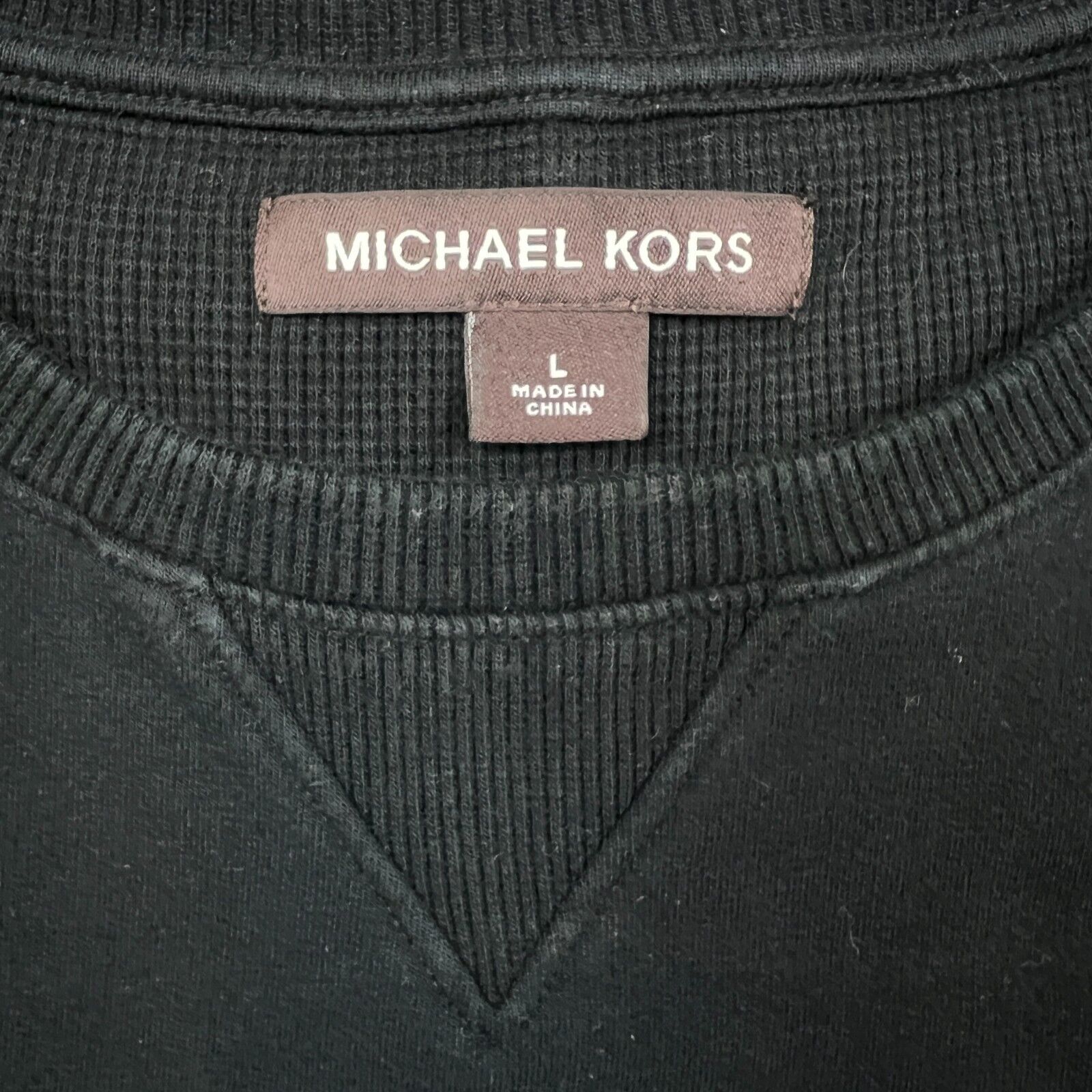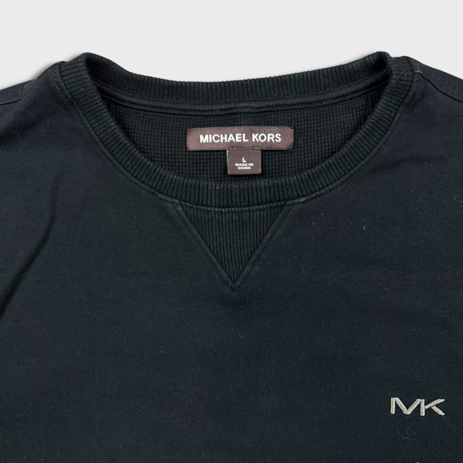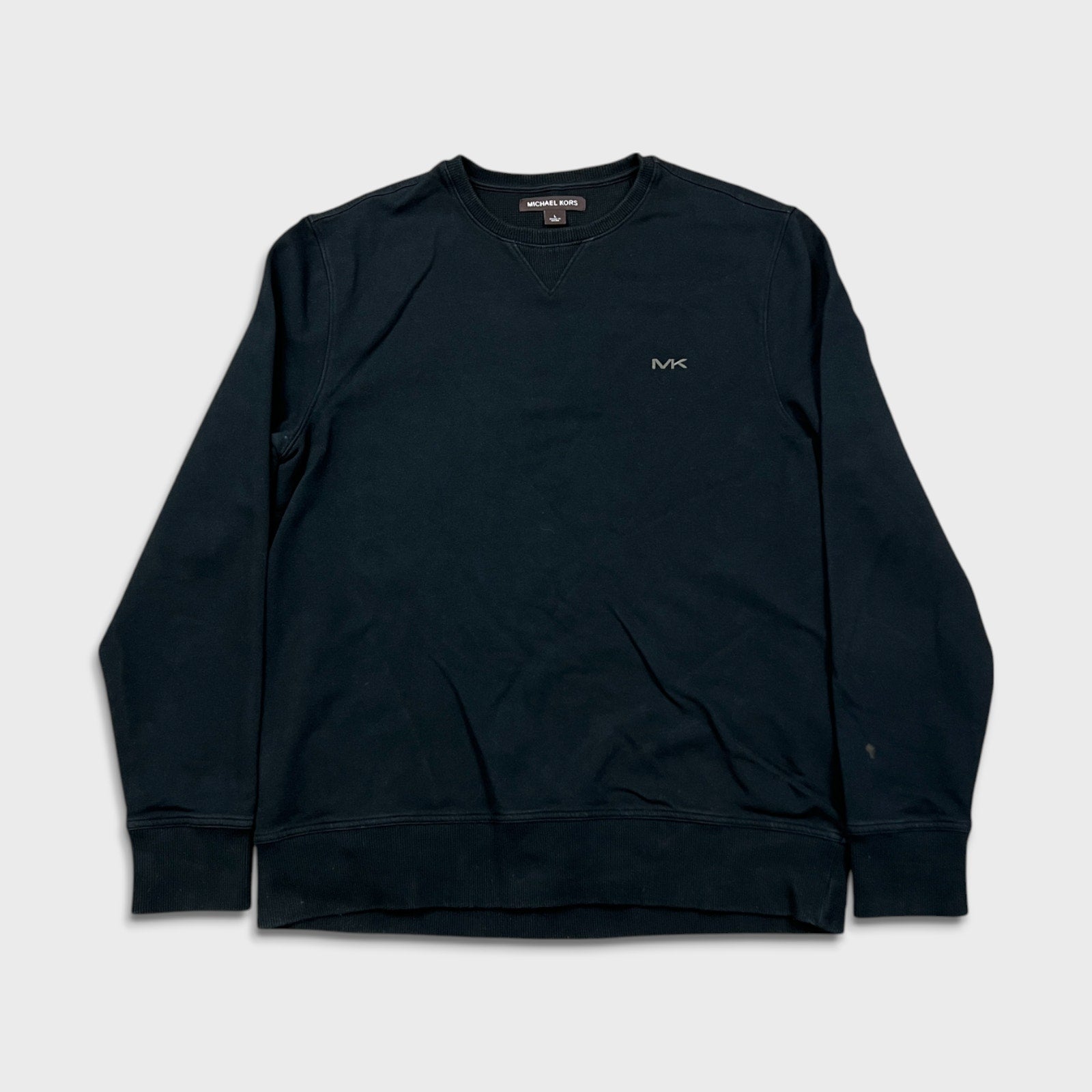 Michael Kors Sweatshirt Mens Large Black Embroidered MK Logo Pullover Sweater