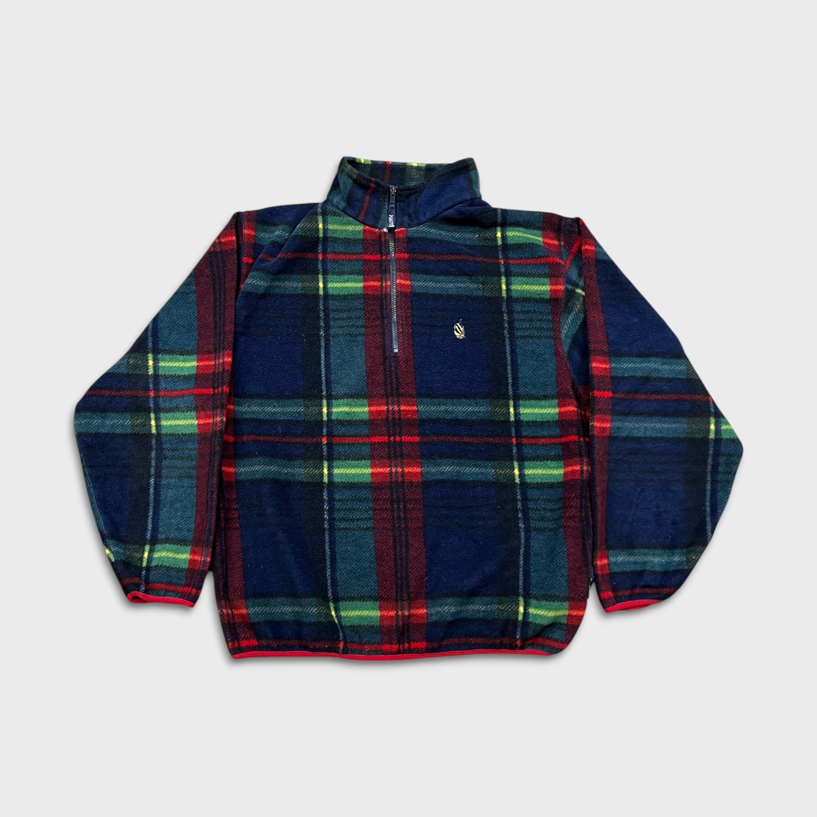 Vintage 90s Nautica Fleece Mens Medium Plaid USA 1/4 Zip Pullover Jacket