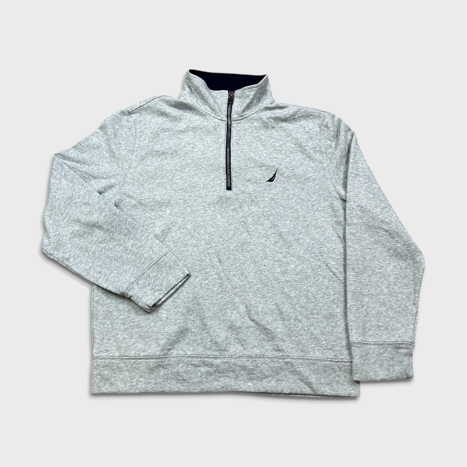 Nautica Sweatshirt Mens Large Gray 1/4 Zip Classic Logo Pullover