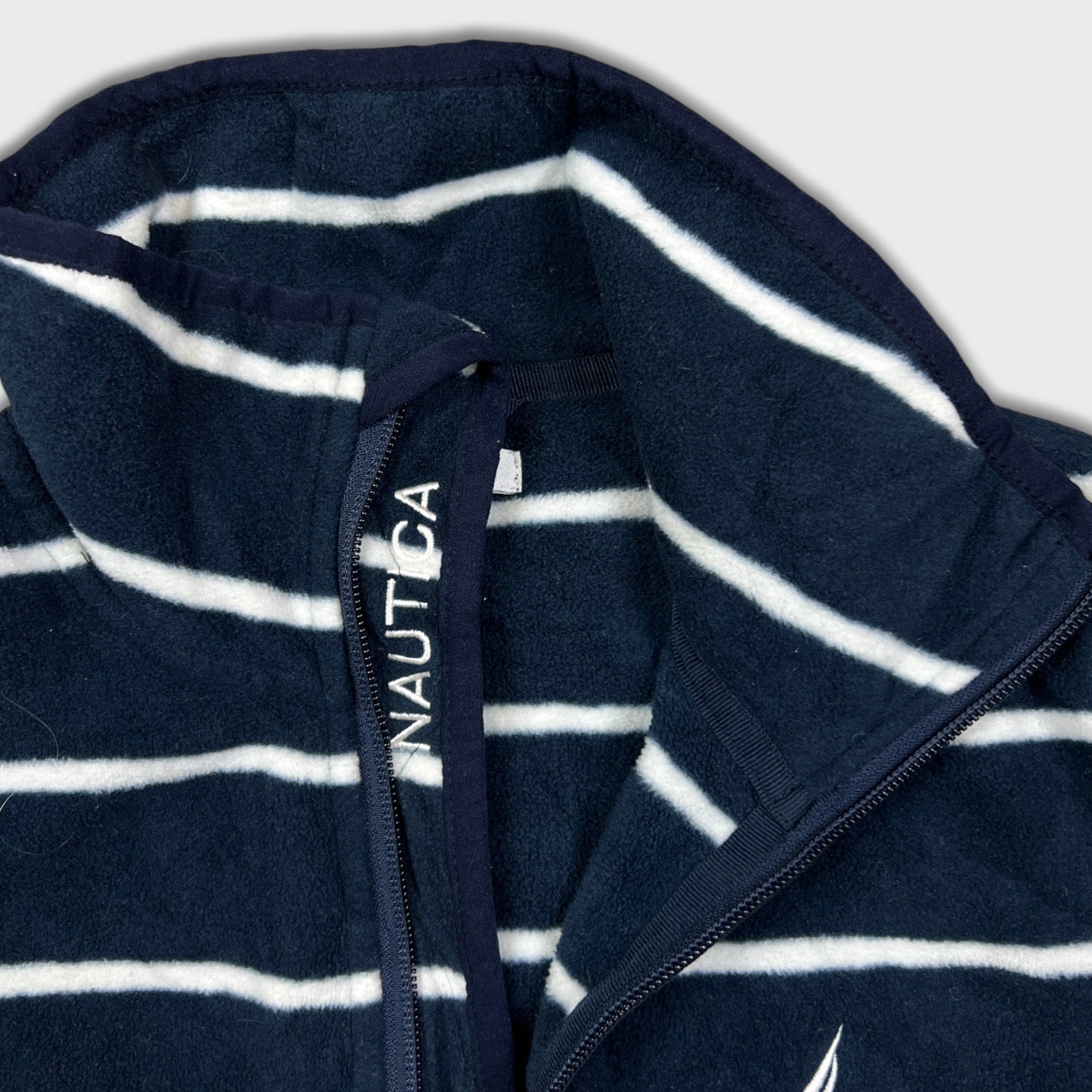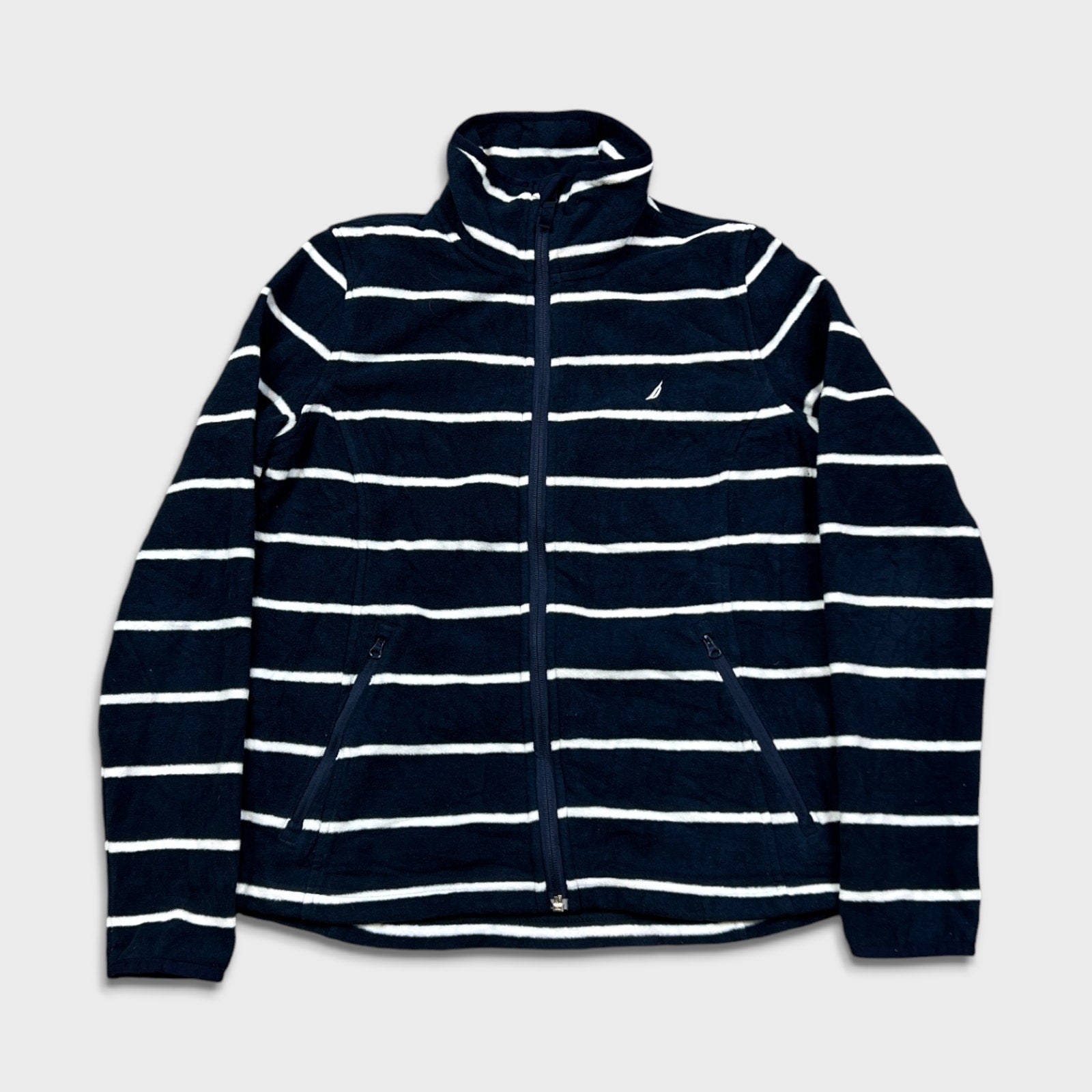 Nautica Fleece Mens XS Blue Full Zip Nature Outdoor Striped Jacket