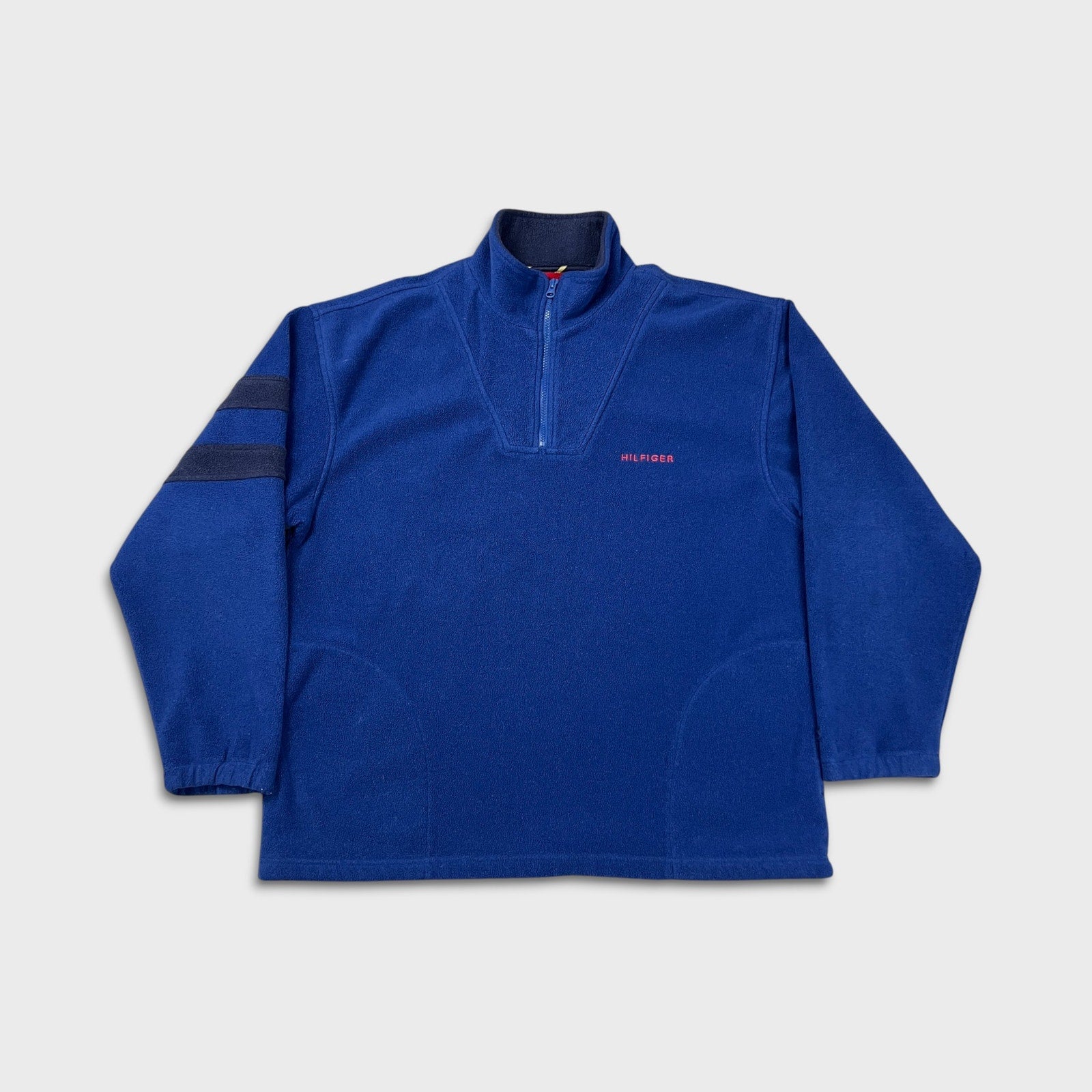 Vintage 90s Tommy Hilfiger Fleece Mens Large Blue Pullover 1/4 Zip Jacket