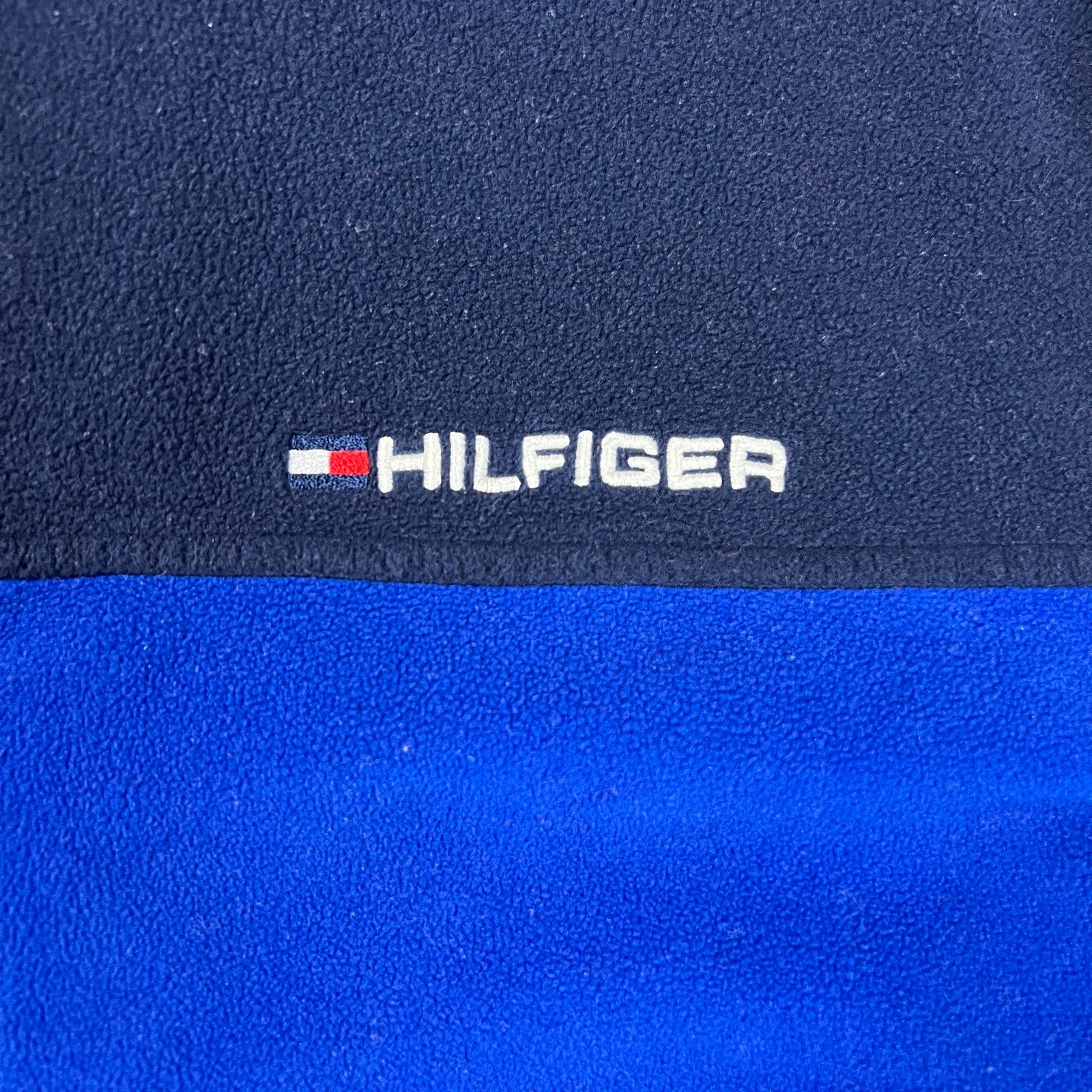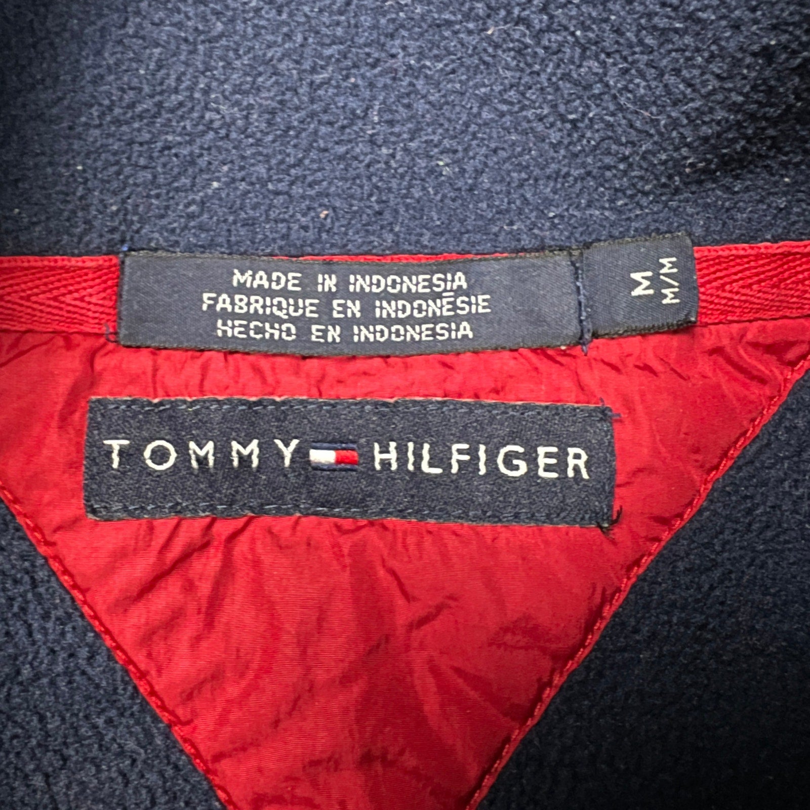 Vintage Y2K Tommy Hilfiger Fleece Mens Medium Blue Flag Pullover Full Zip Jacket