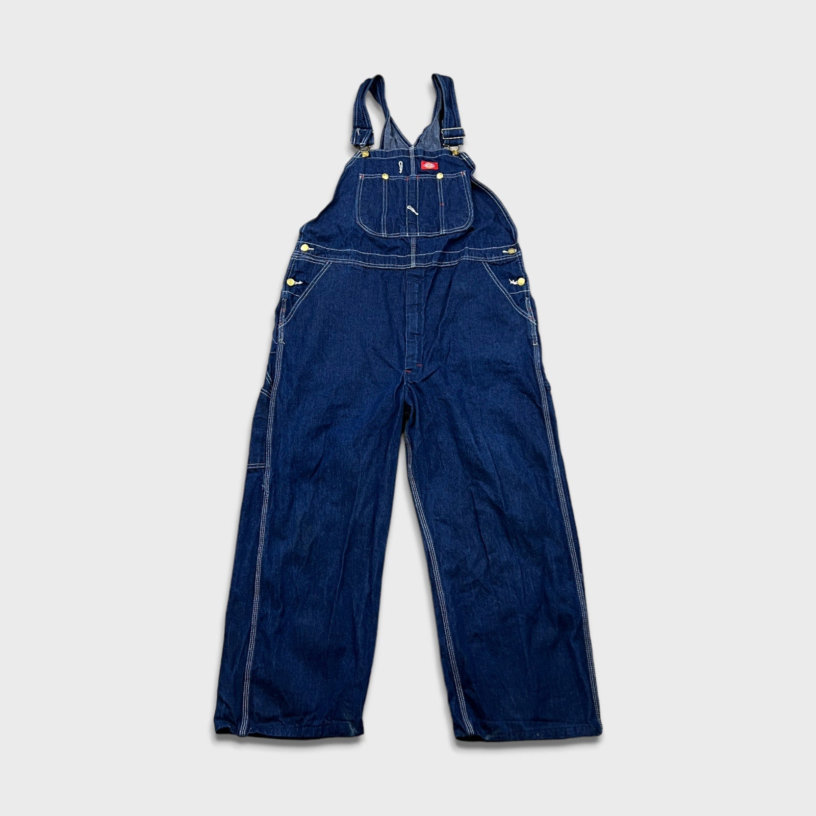 Dickies Overalls Mens Size 2XL Blue Bib Dark Wash Hammer Loop Workwear Denim