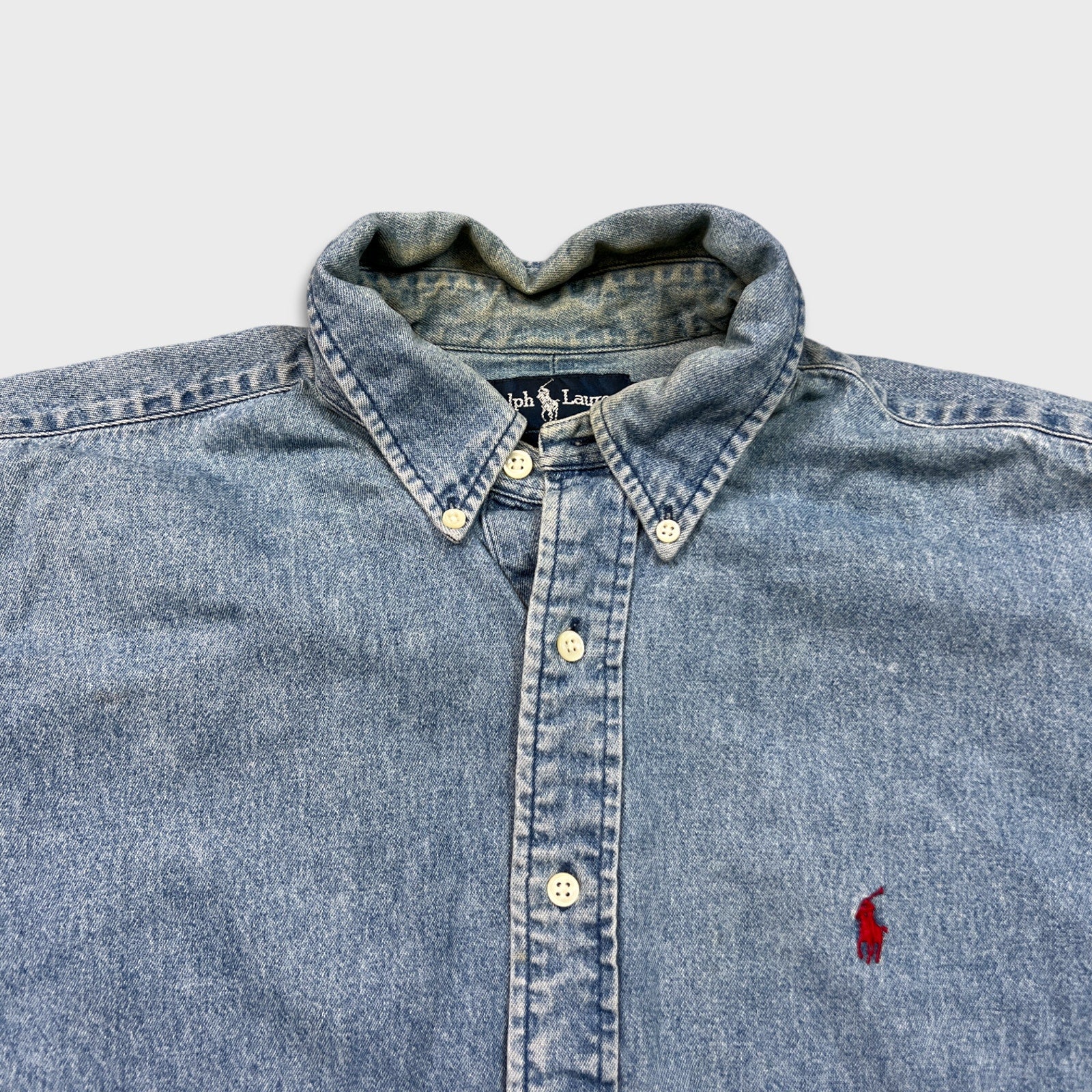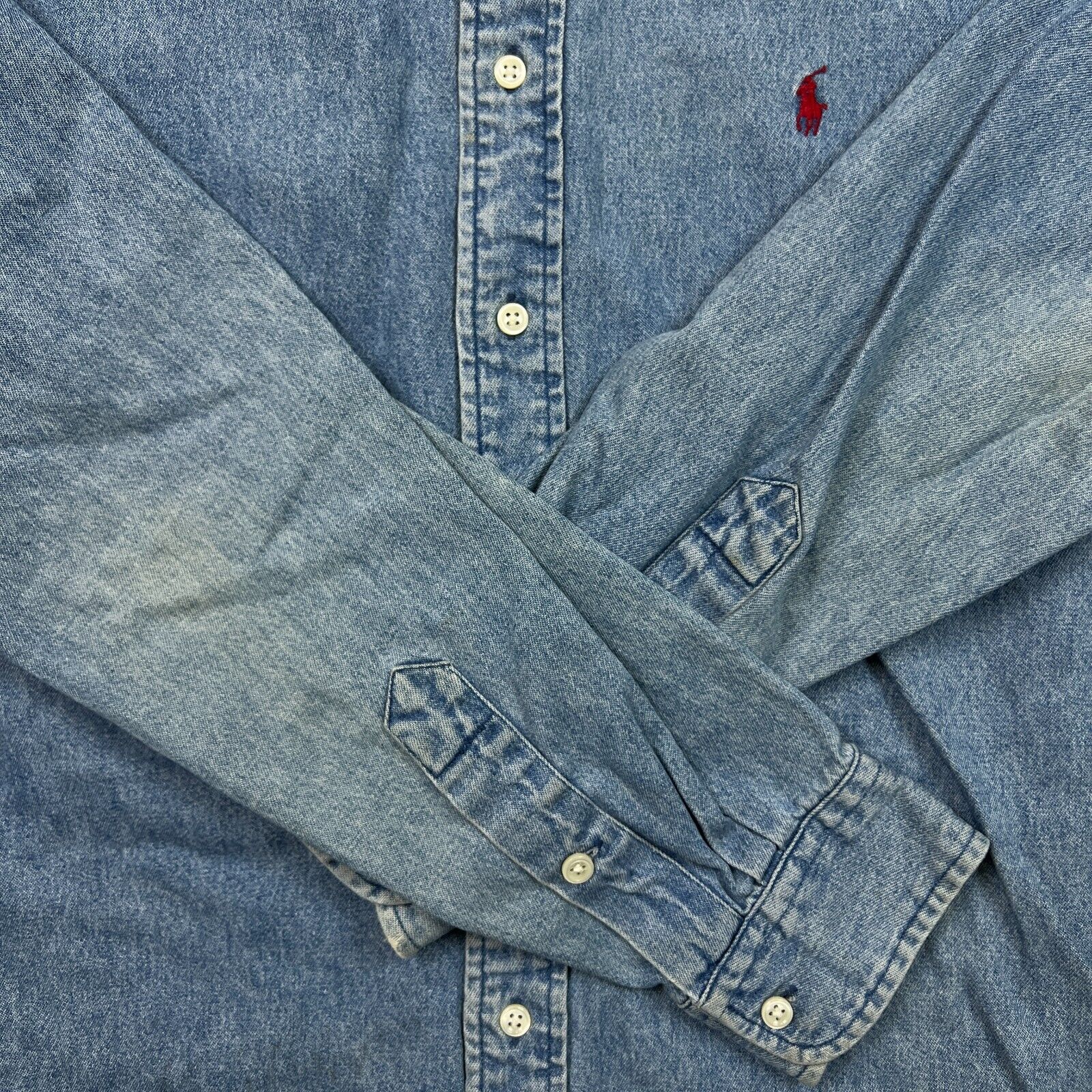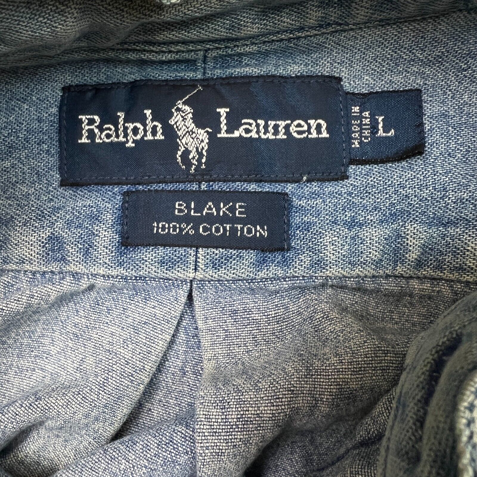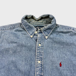 Vintage 90s Polo Ralph Lauren Denim Shirt Mens Large Blue Blake Casual Button Up