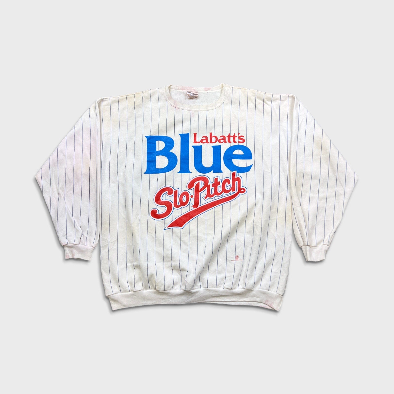 Vintage 1990 Labatt's Blue Beer Sweatshirt Mens Large White Slo-Pitch Baseball Crewneck