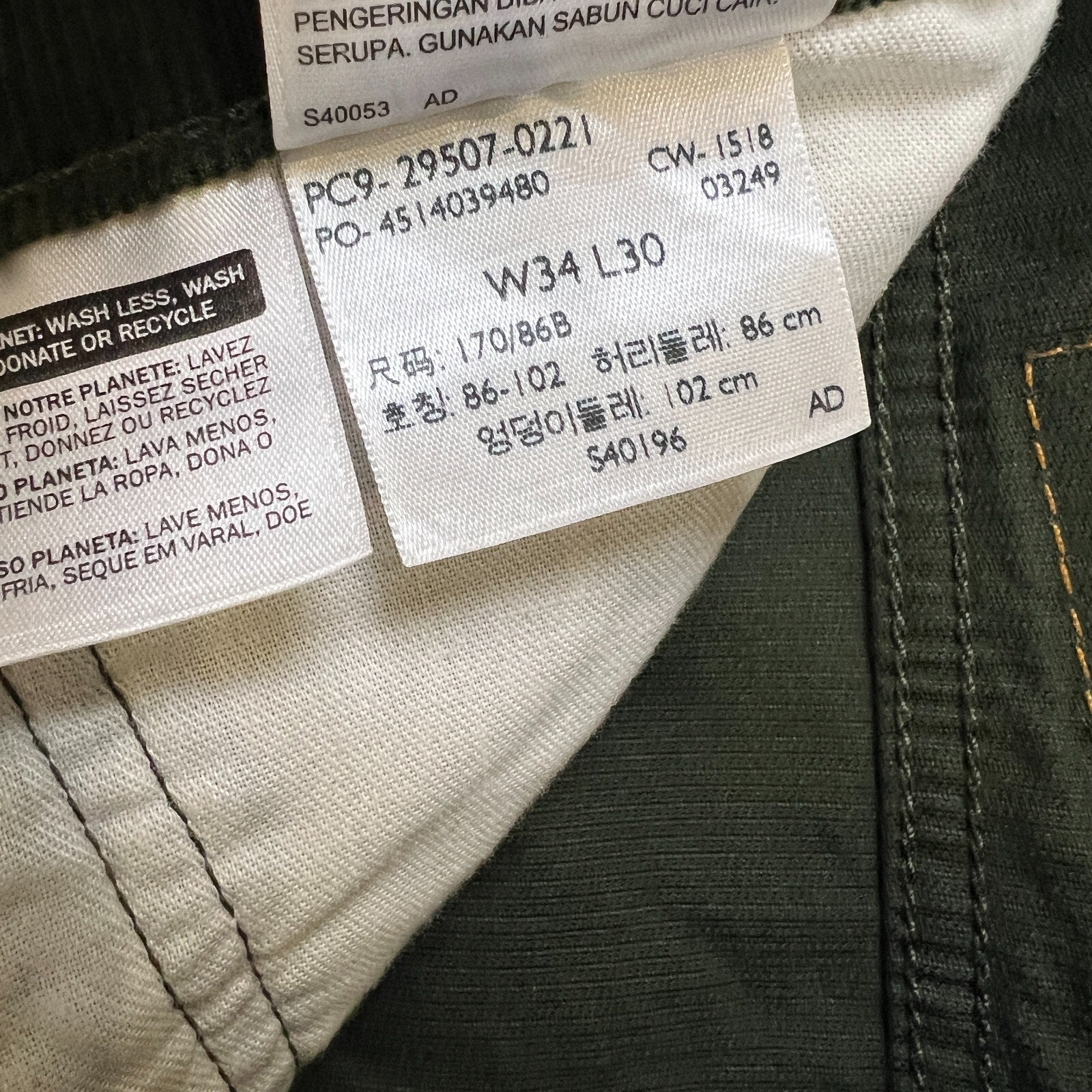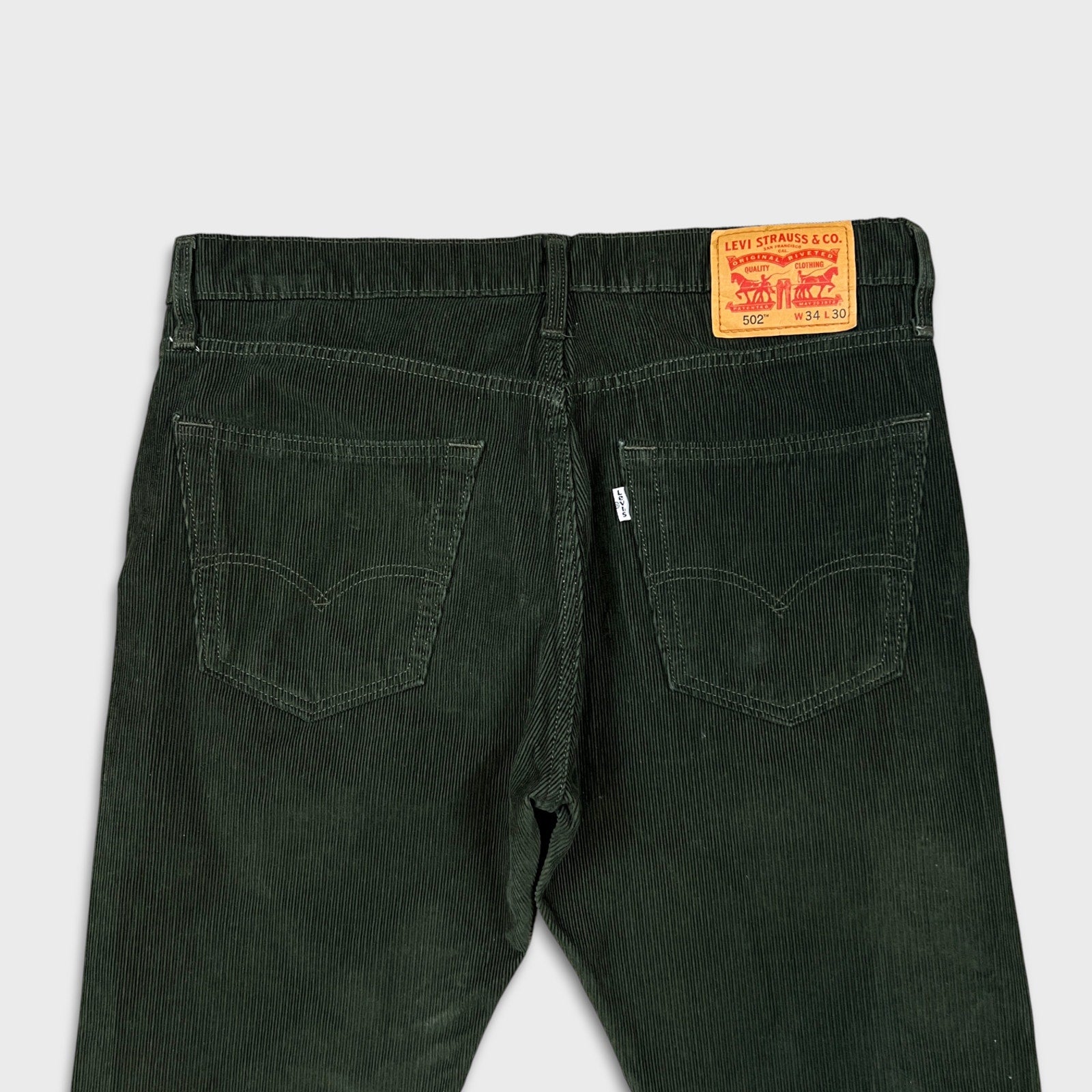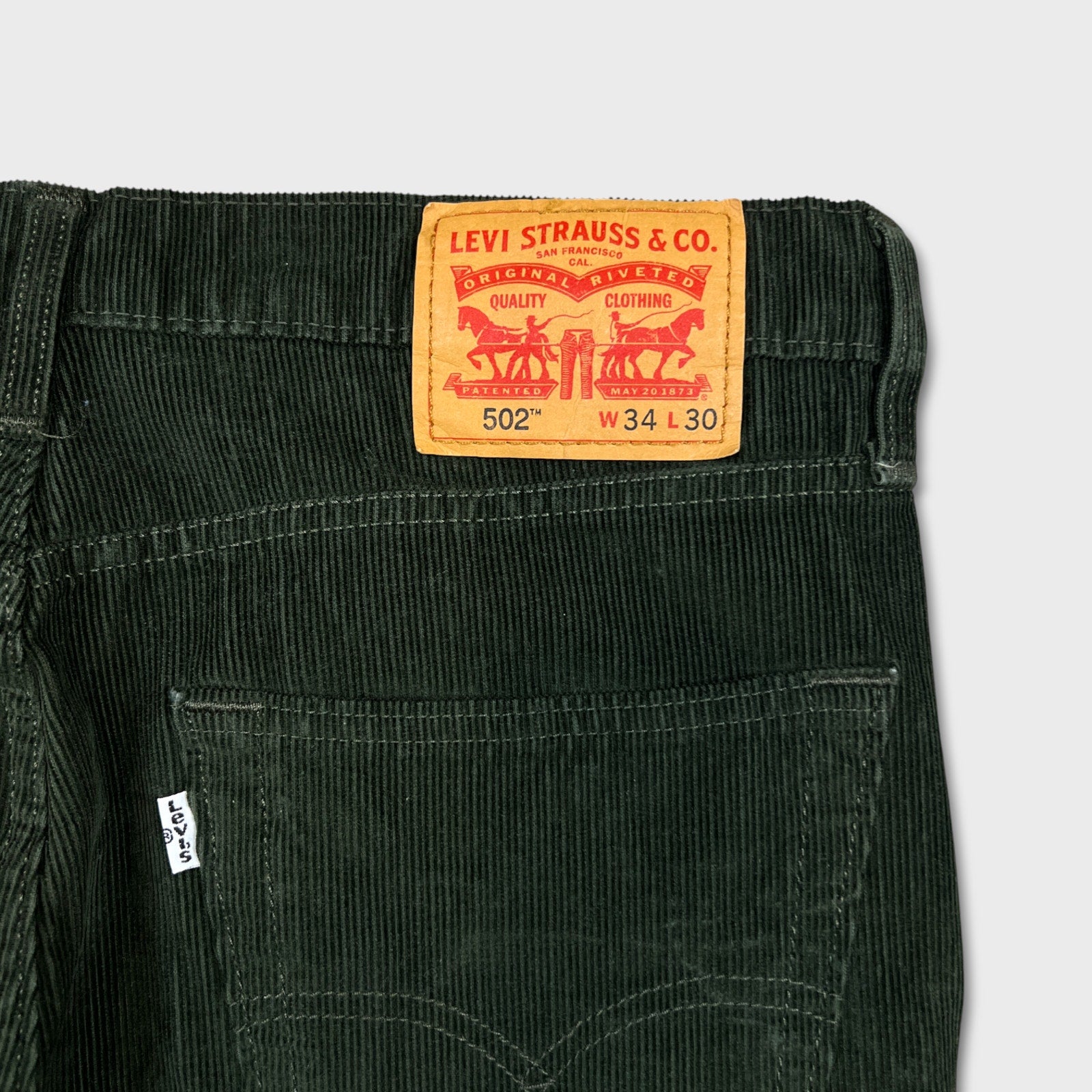 Levi's 502 Pants Mens 34x30 Green Corduroy Tapered Stretch Regular Fit Mid Rise
