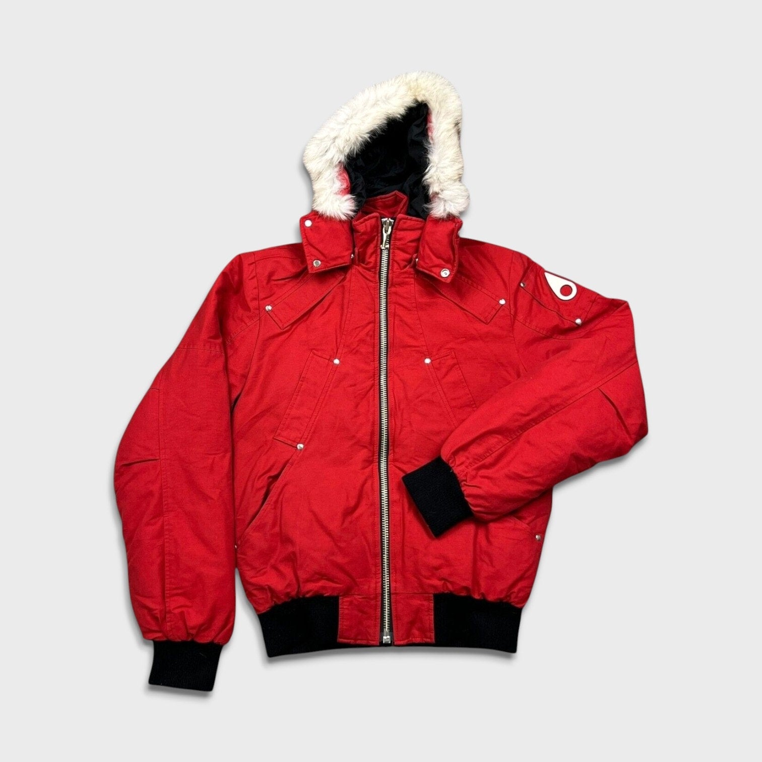 Moose Knuckles Jacket Mens Small Red Original Ballistic Bomber Fur Heavy Full Zip Down Coat