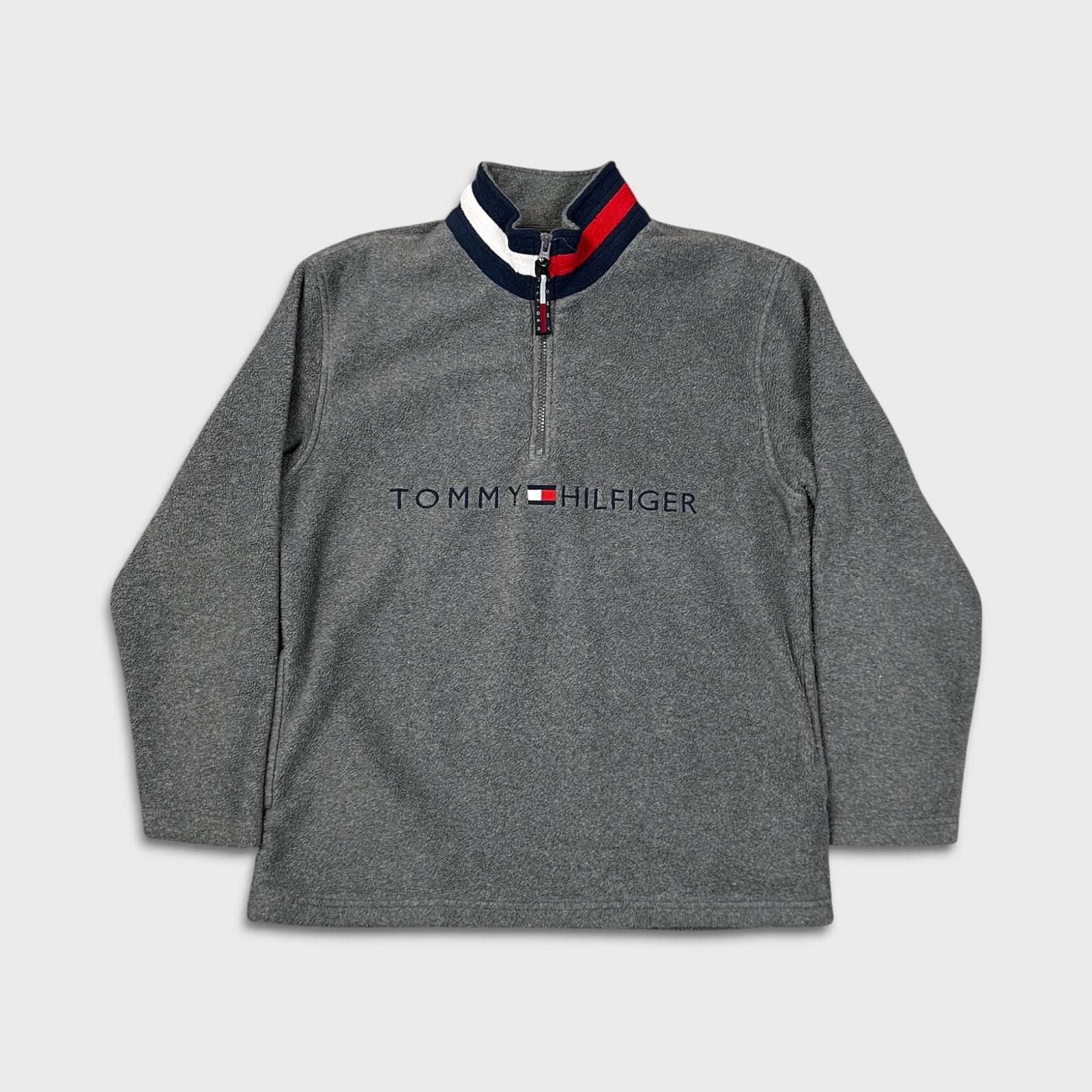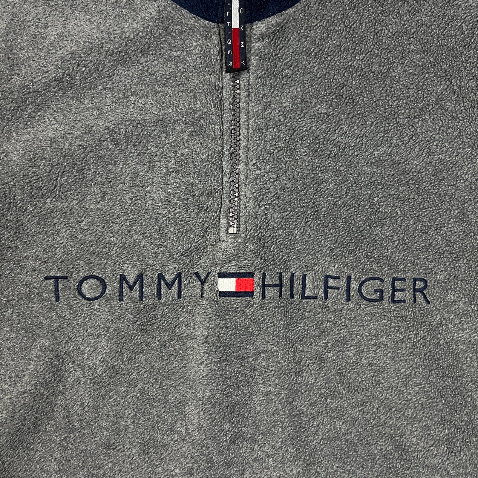 Tommy Hilfiger Fleece Mens Medium Gray Flag Pullover 1/4 Zip Jacket