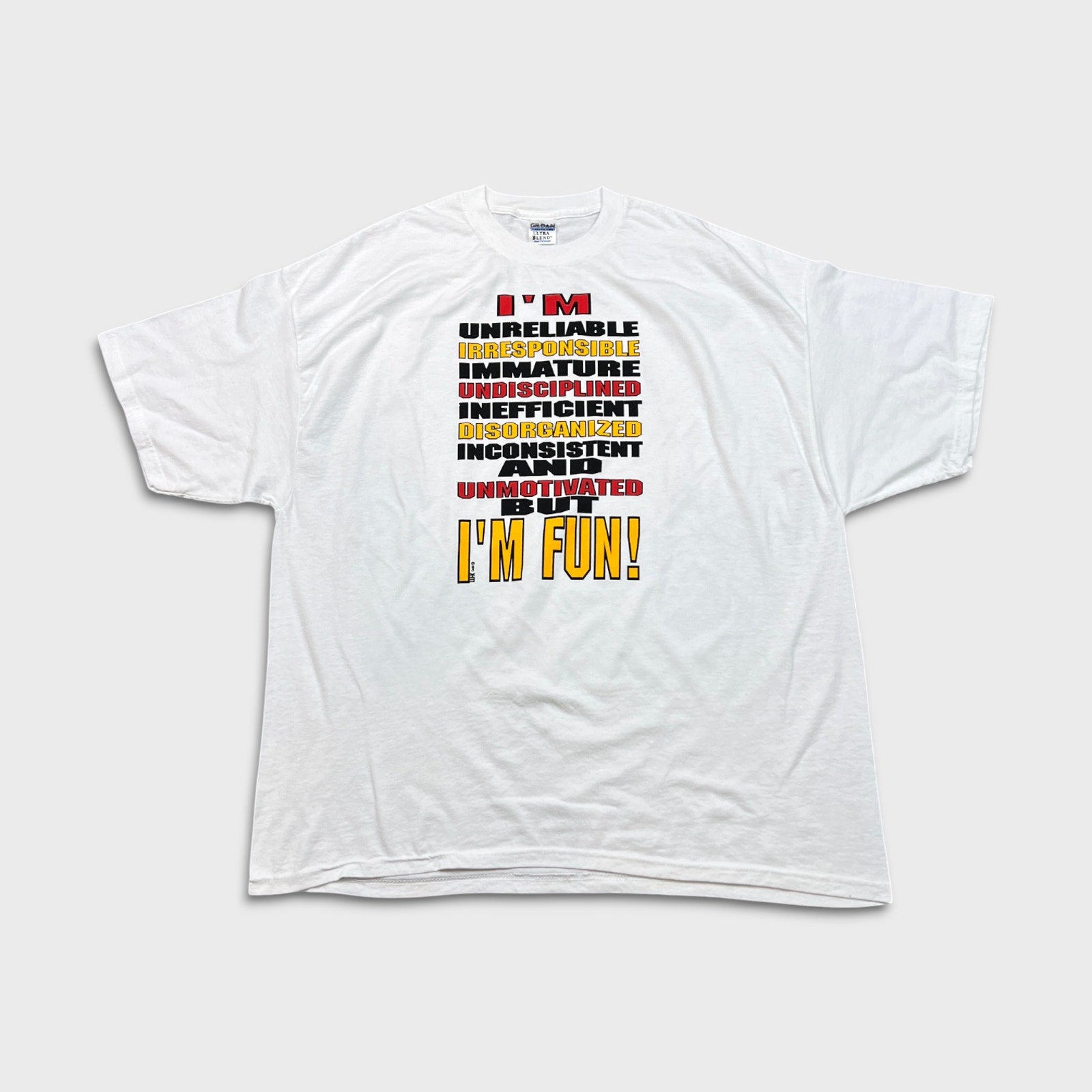 Vintage 1992 I'm Fun T Shirt Mens 3XL White Full Print Funny Short Sleeve Tee