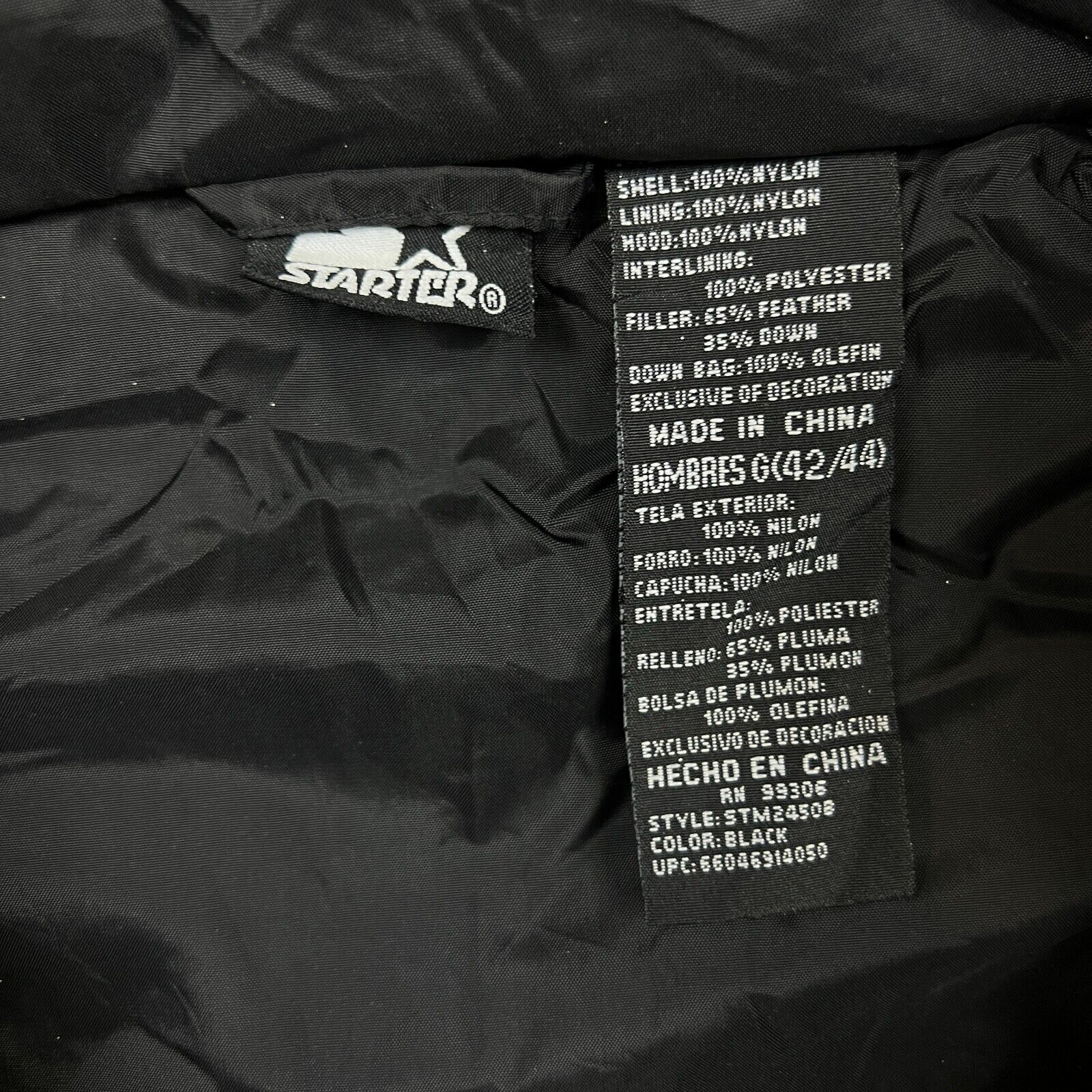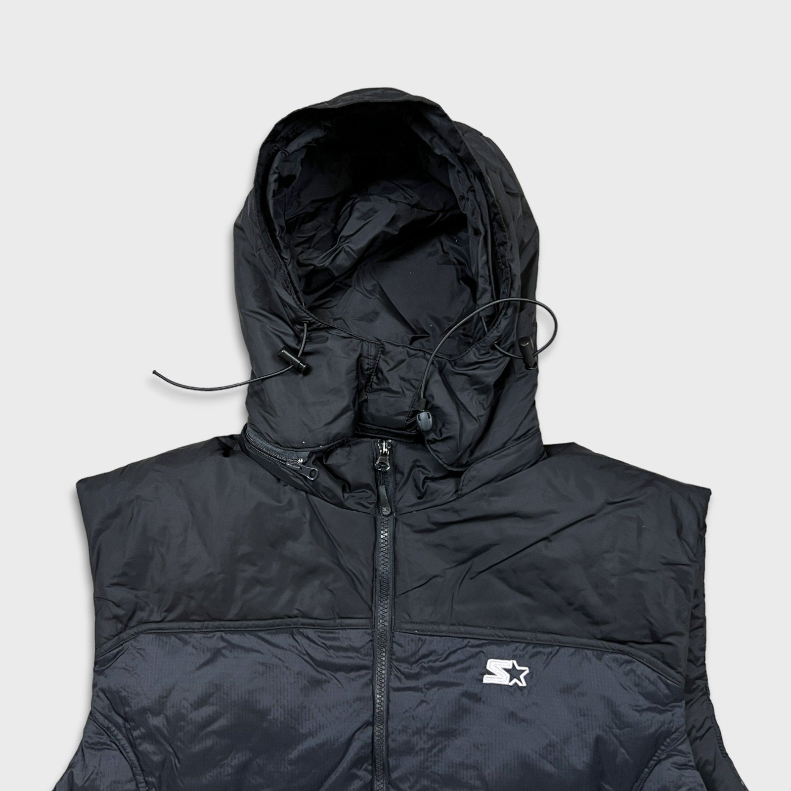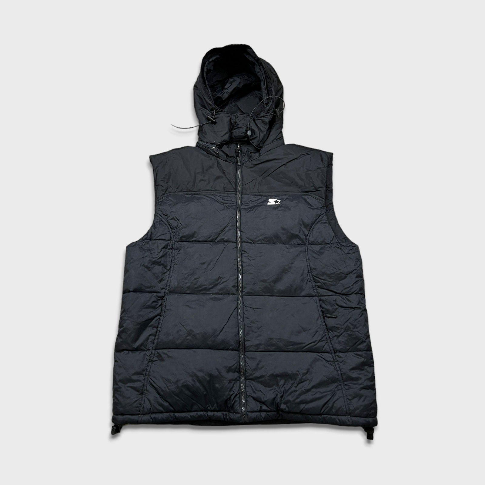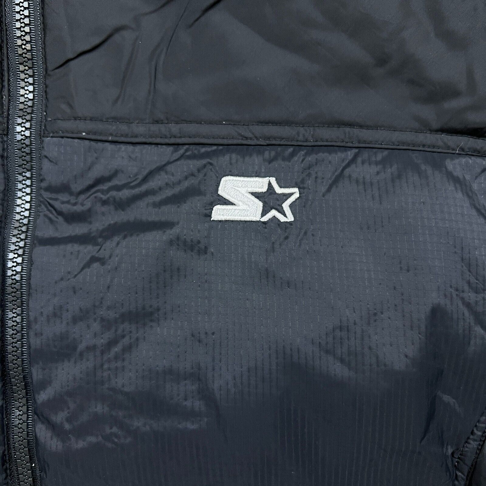 Vintage 90s Starter Vest Jacket Mens Large Black Full Zip Puffer Down
