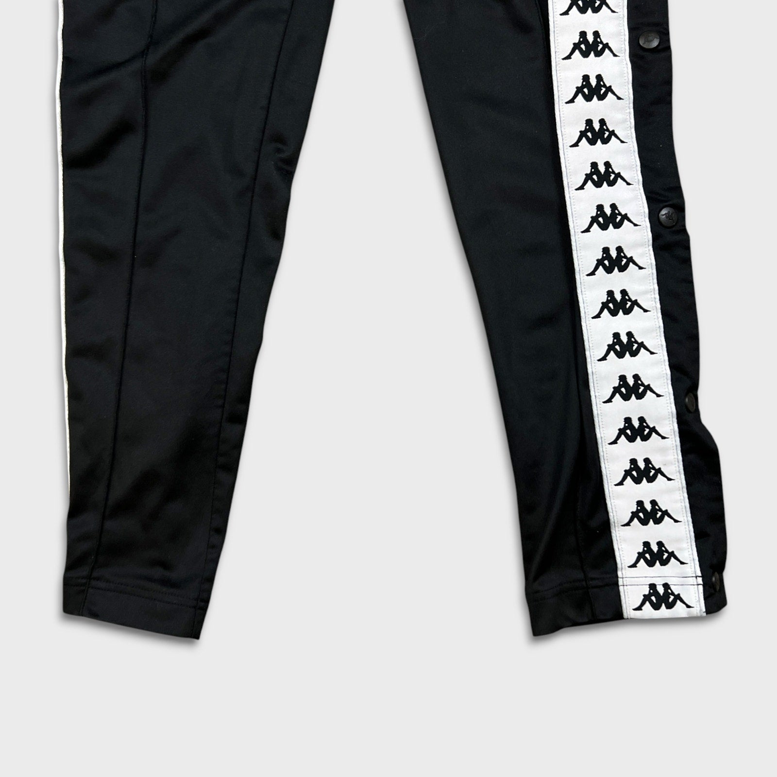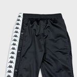 Kappa Track Pants Mens Medium Black Tear Away Side Tape Athletic Gym Jogger