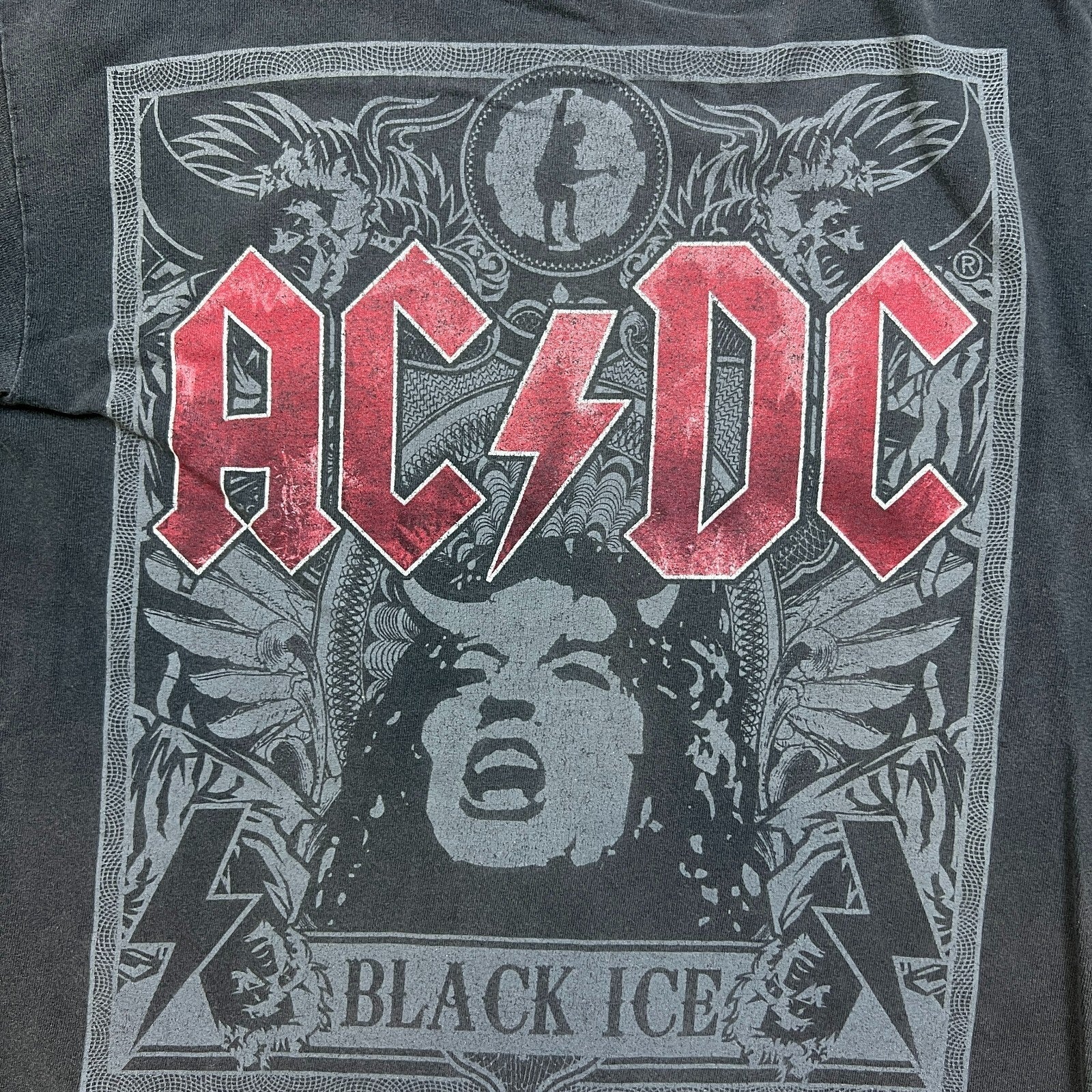 Vintage 2008 AC/DC Black Ice T Shirt Mens Small Gray Sun Faded Distress Band Tee