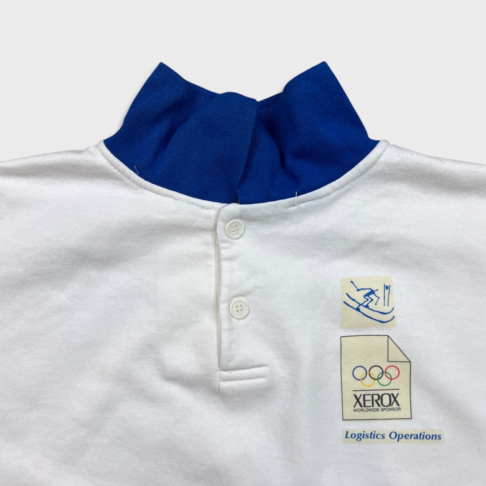 Vintage 90s Xerox Winter Olympics Sweatshirt Mens XL White Button Up Pullover Crewneck