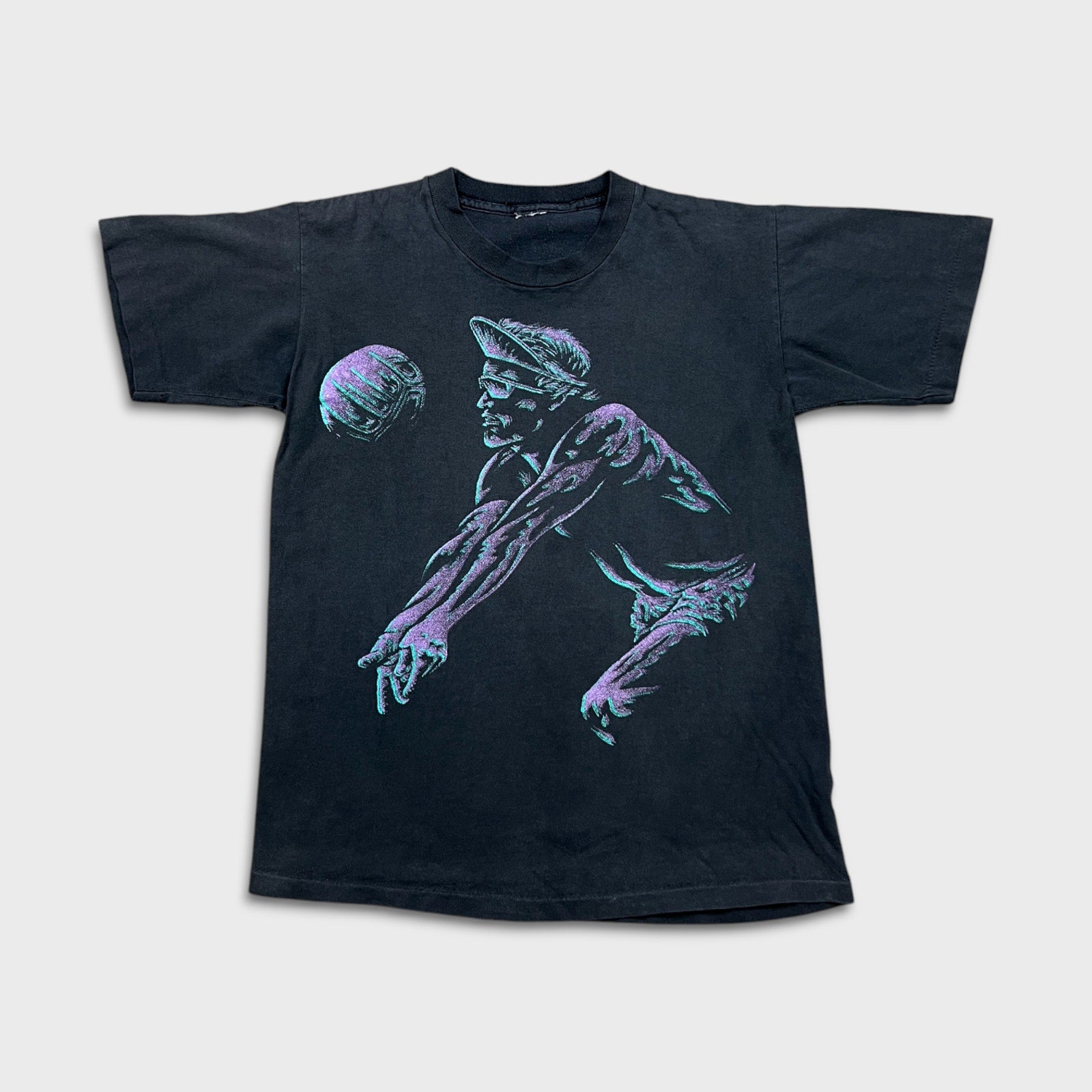 Vintage 90s Volleyball T Shirt Mens Small Black Single Stitch Faded Sports Tee