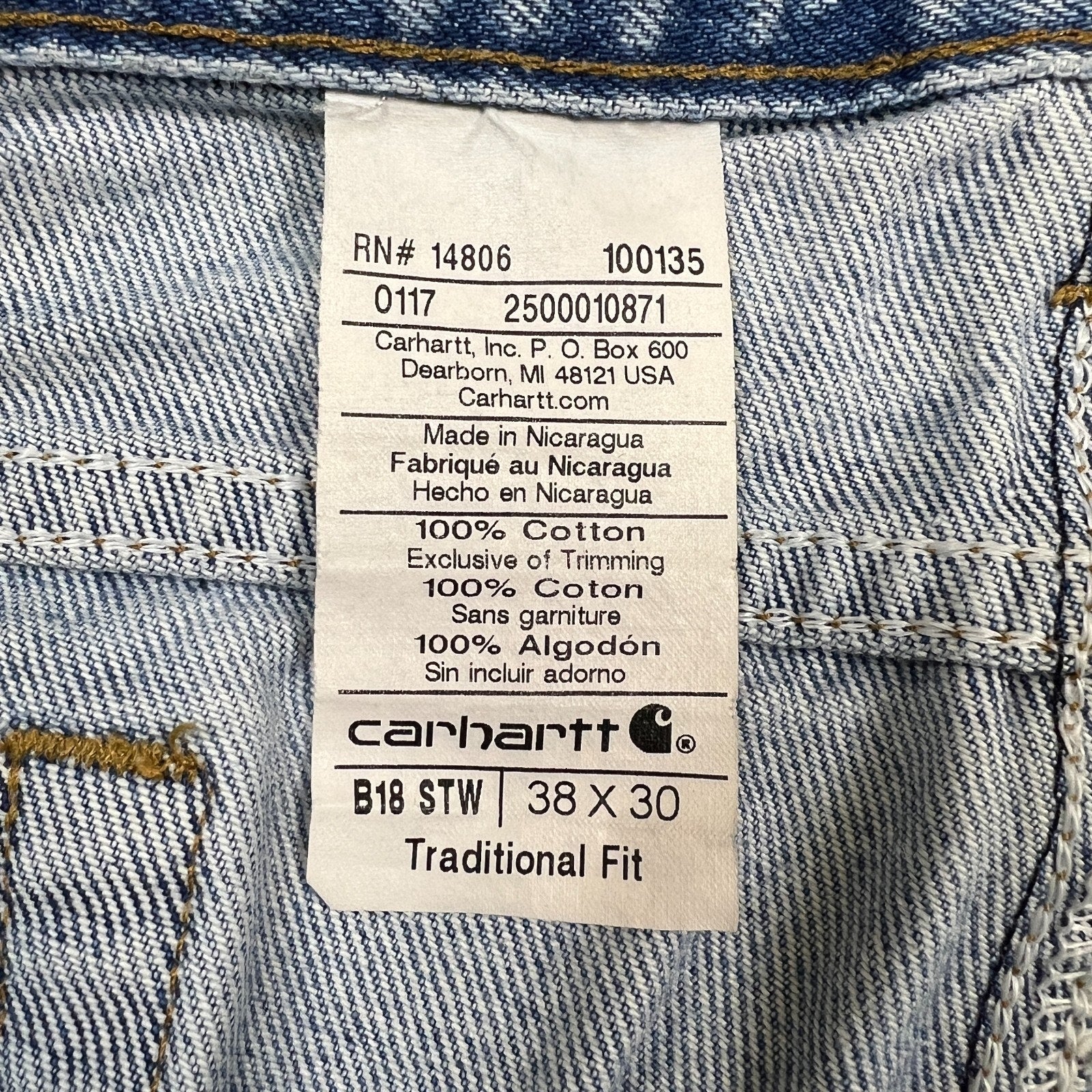 Carhartt B18 STW Jeans Mens 37x30 Traditional Fit Taper Faded Distress Workwear Pants