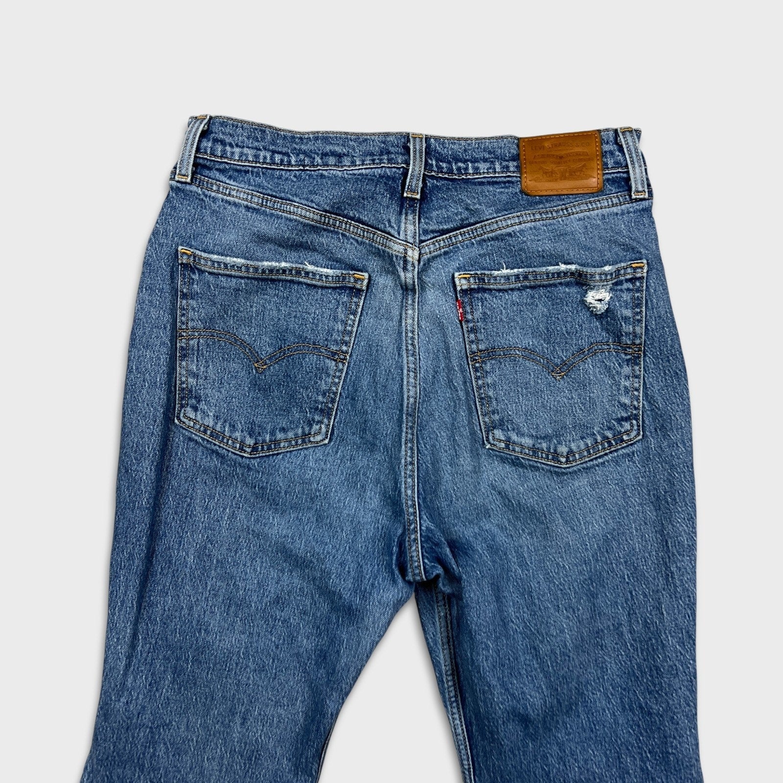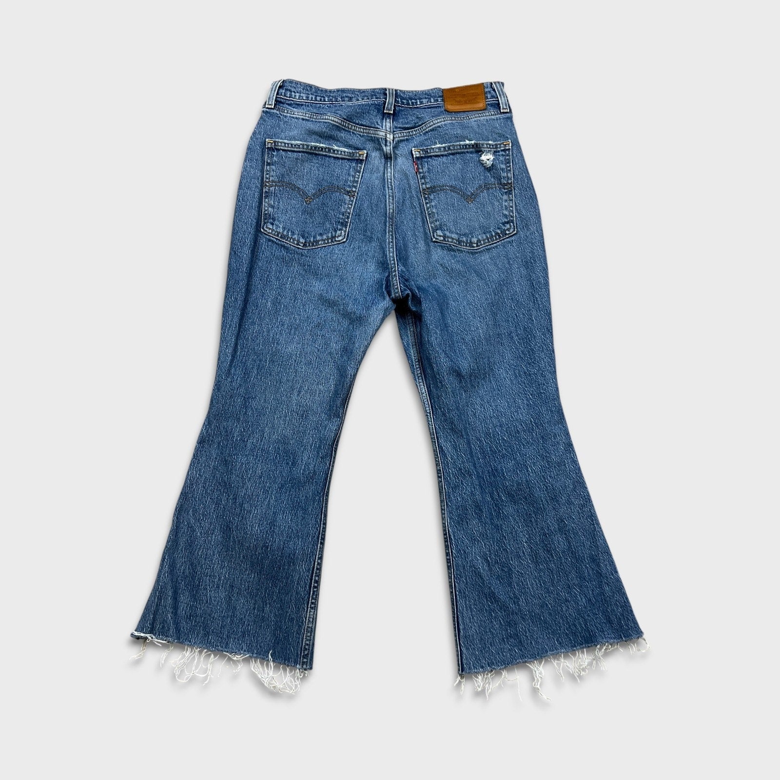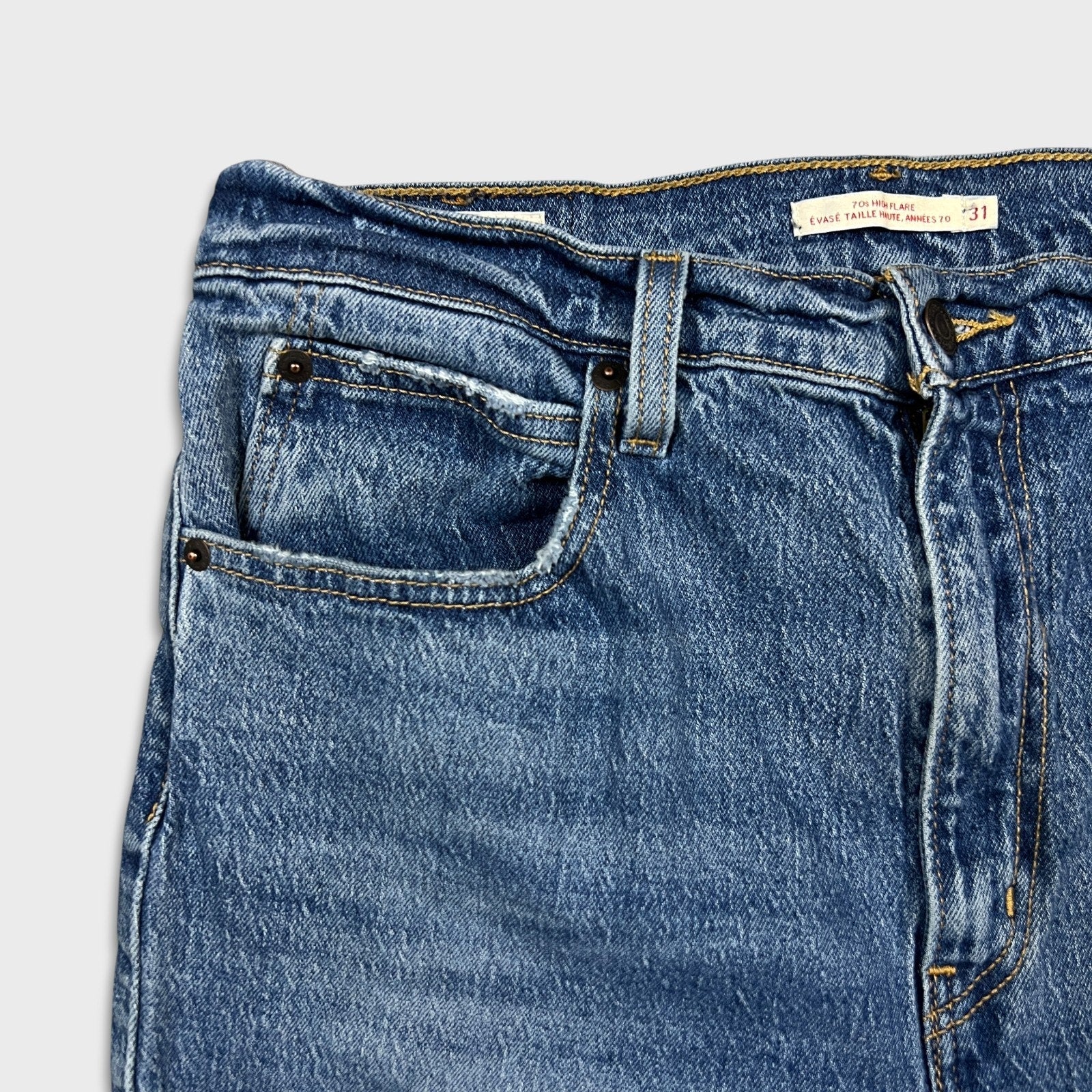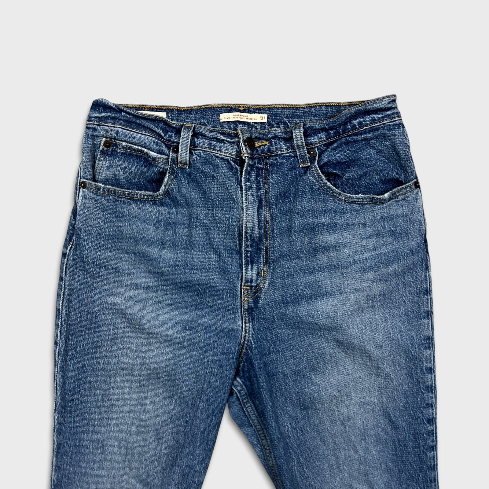 Levi's 70s Style High Flare Jeans Womens 31x24 Blue Medium Wash Distressed Denim Pants