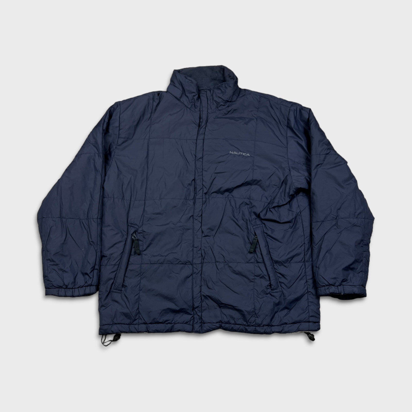 Nautica Jacket Mens Large Blue Reversible Fleece Full Zip Heavy Coat Outdoor
