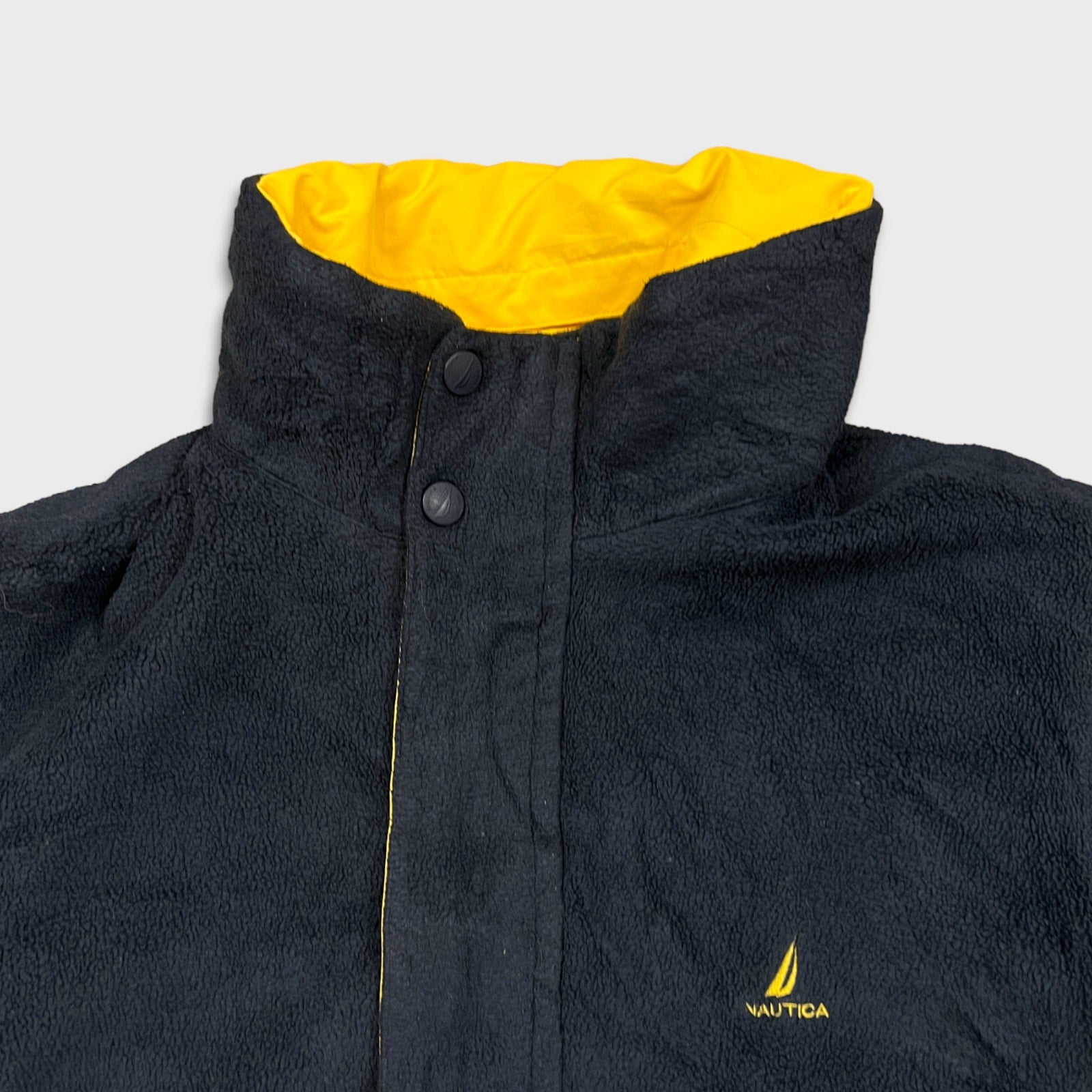 Nautica Jacket Mens XL Yellow NS83 Sailboat Logo Reversible Fleece Full Zip Coat